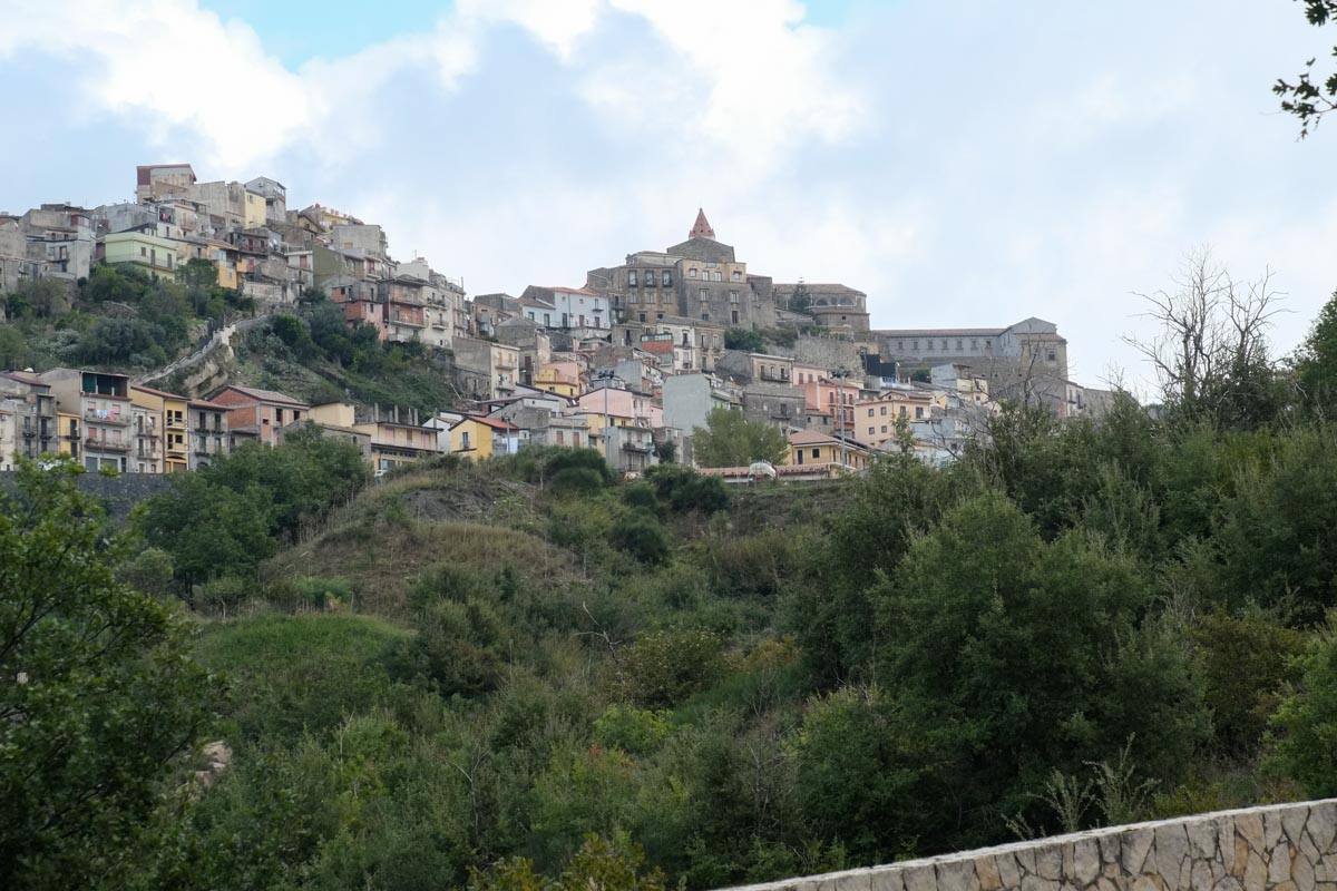 Pour cela, on passe par Castiglione da Sicilia. Village perché sur des collines, très joli vu de la route… En revanche, ce n’est pas facile de le traverser car les rues sont pentues, étroites et les voitures garées n’importe comment…