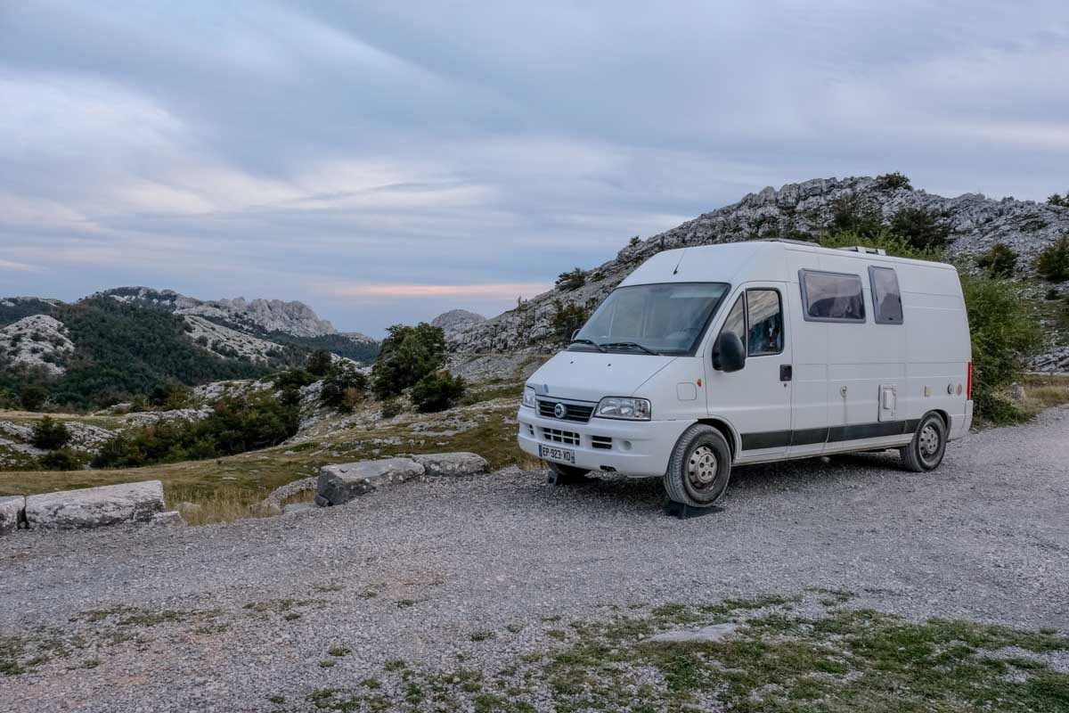 Vendredi 14/09 : Il nous reste 11kms de piste caillouteuse à emprunter pour descendre de l’autre côté de la montagne… Et atteindre la route qui mène à la côte en passant par Knin, puis Sinj.