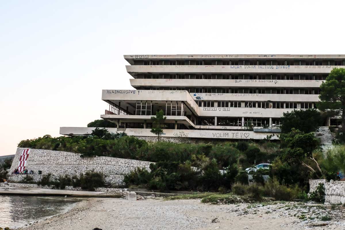 C’est étrange, dans cet endroit hyper-touristique, à proximité de Dubrovnik, de trouver encore des bâtiments dans cet état alors que le potentiel est énorme… En attendant, il est accessible à tous, ce qui permet d’accéder à la plage et de s’y prélasser dans une atmosphère un peu particulière de fin d’une époque !