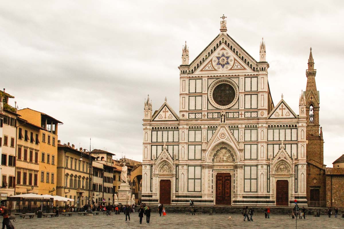 La basilique di Santa Croce et, à sa gauche, la statue de Dante