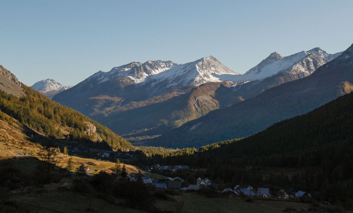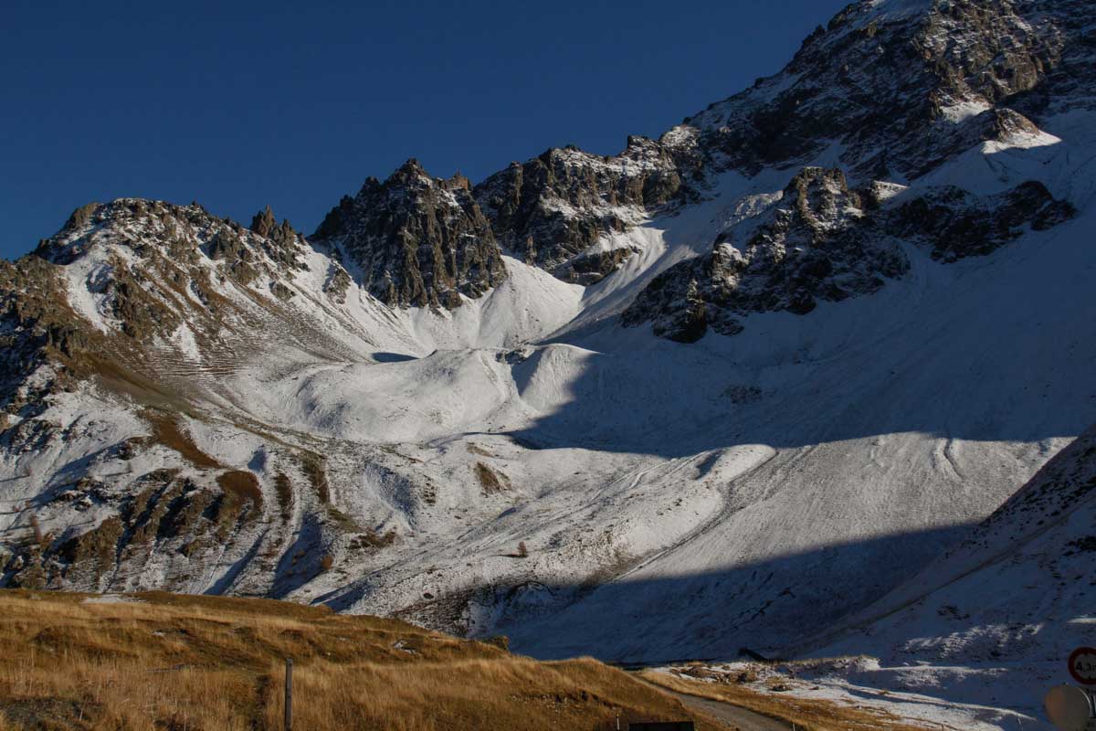 Nous roulons dans le magnifique paysage des Alpes et nous nous arrêtons pour la nuit au village de La Grave/La Meige, petite station de sports d’hiver, sur le parking du téléphérique.