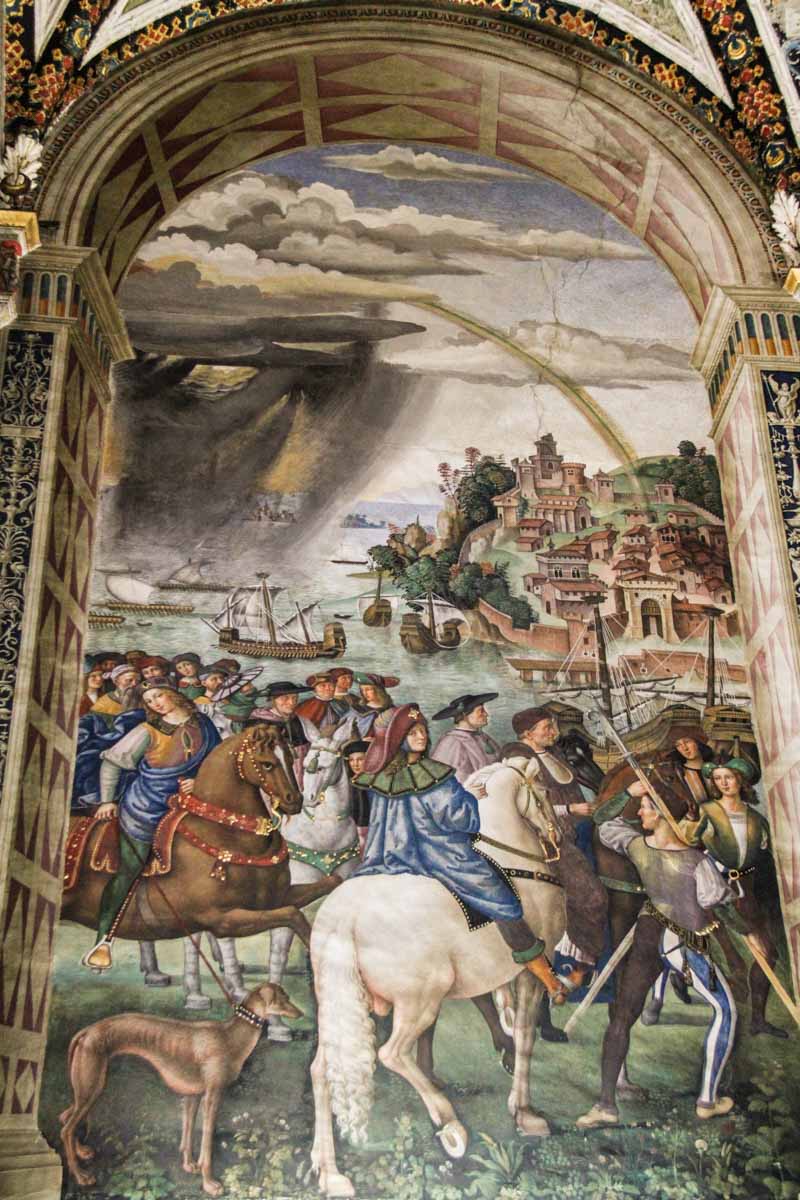 Dans la cathédrale, la Libreria Piccolomini a été fondée pour conserver la bibliothèque de Pie II