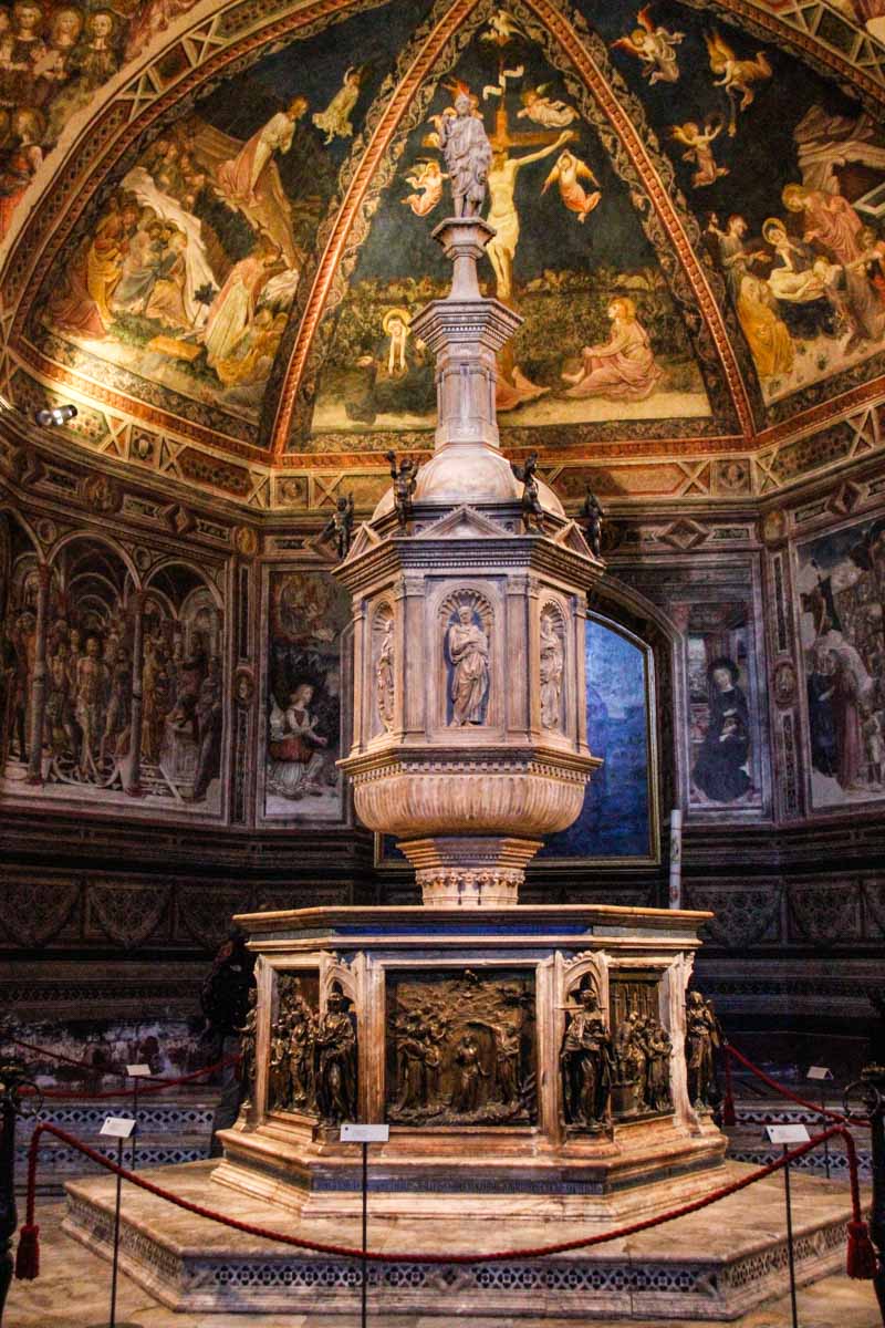 Dans le Battistero San Giovanni, les fonds baptismaux sont l'œuvre des célèbres sculpteurs Jacopo della Quercia, Donatello et Ghiberti