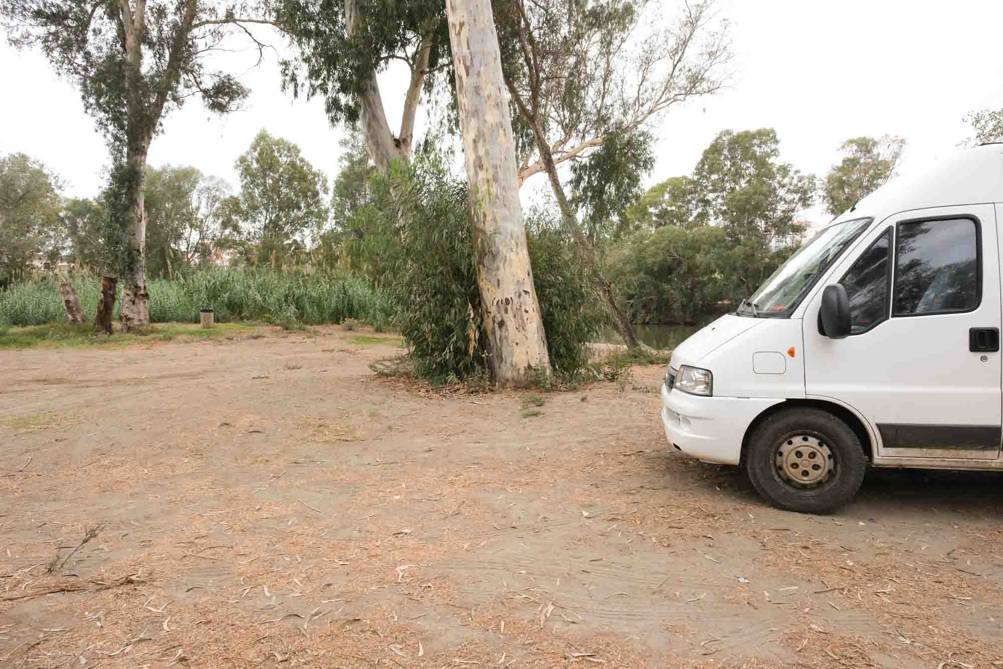 Nous trouvons un endroit pour nous garer sur une aire de pique-nique boisée, près du río Guadiaro (36.303 052 -5.300 907)