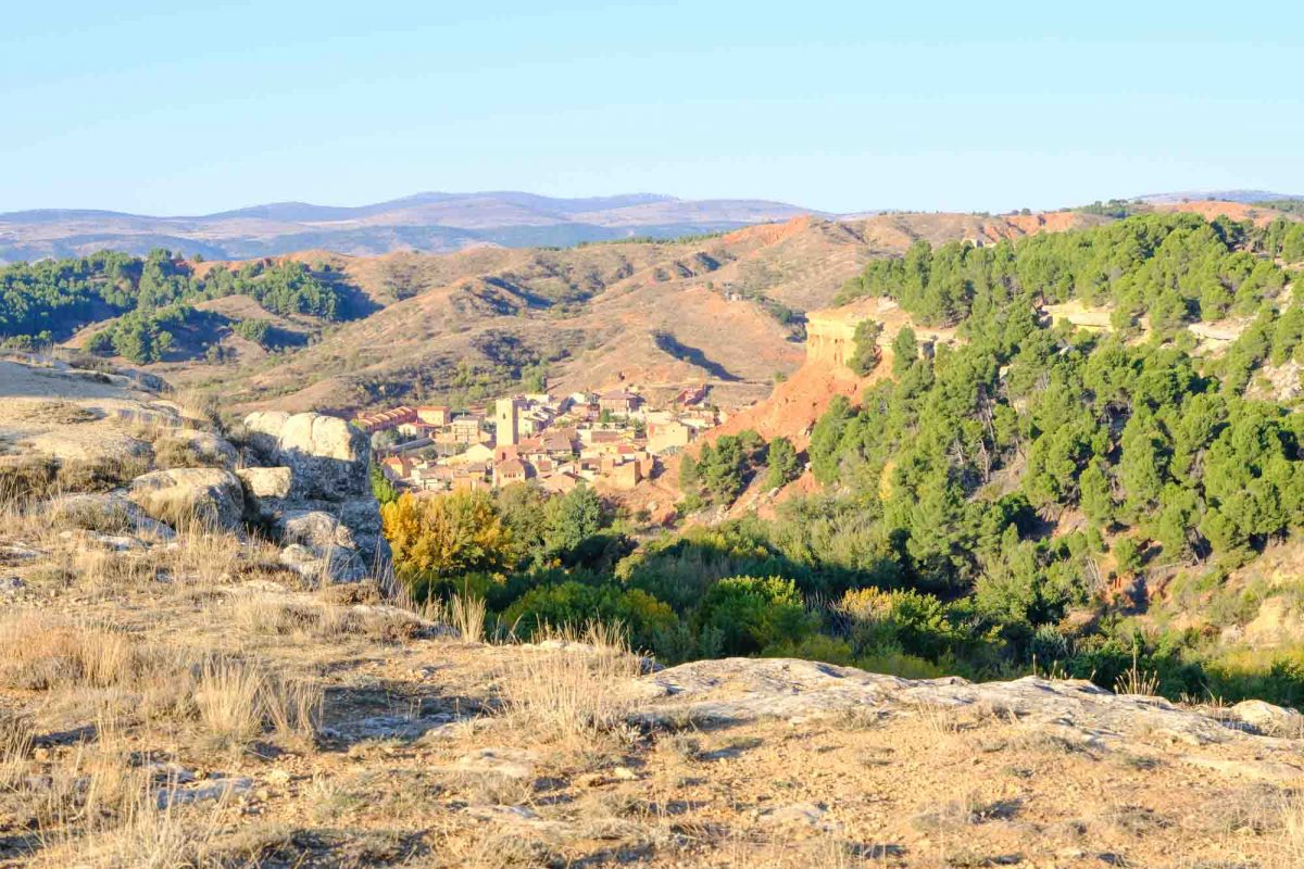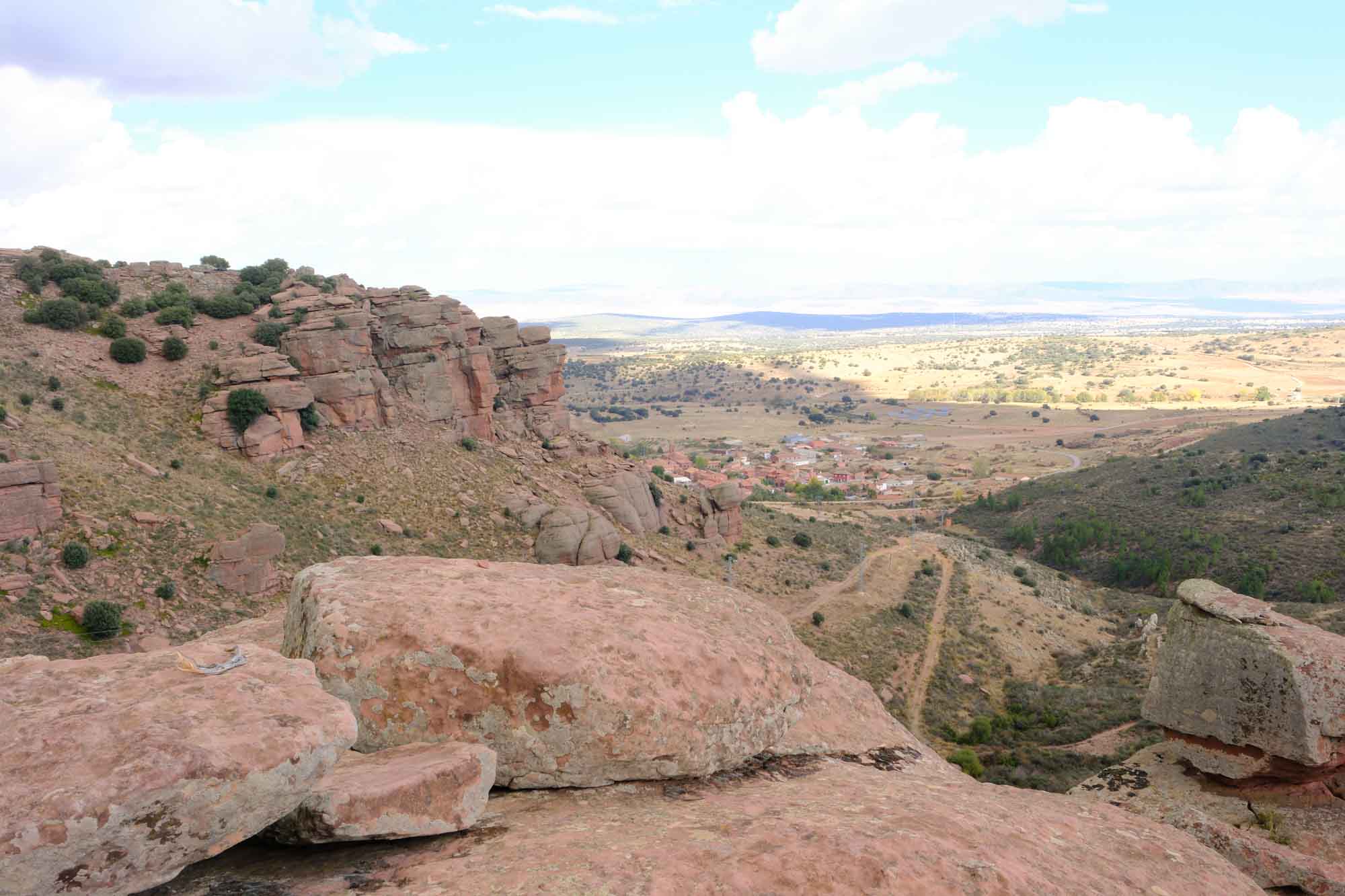 Nous reprenons l’autoroute jusqu’à Teruel, puis bifurquons vers Villafranca del Campo, puis jusqu’à Peracense où un château trône au milieu d’un extraordinaire paysage rocheux.
