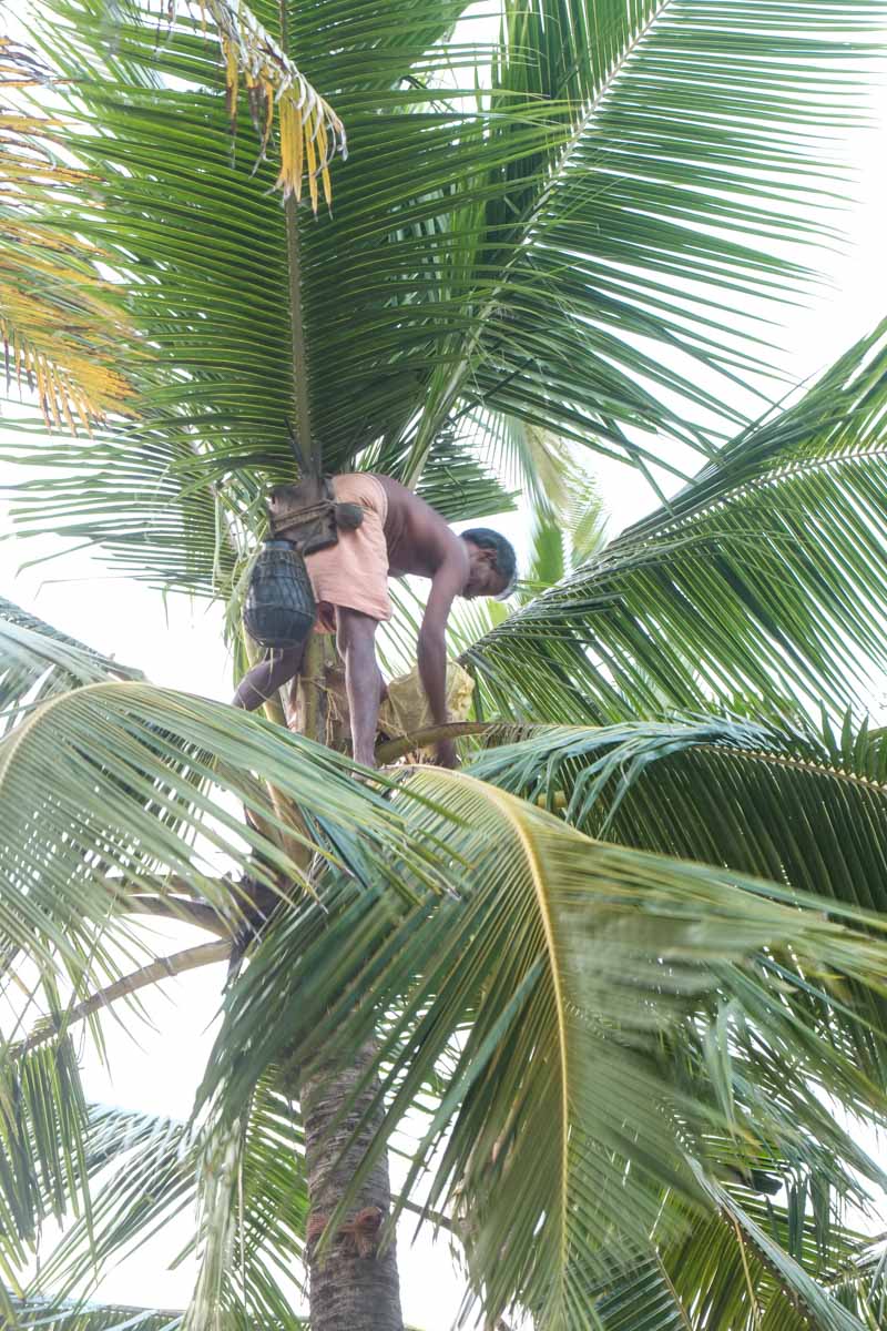 récolte de sève de palmier pour faire du vin de palme