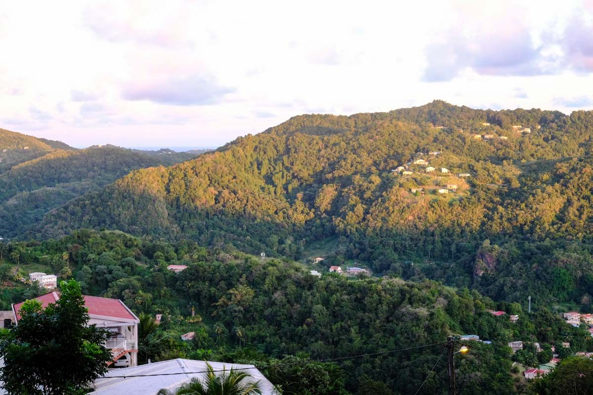 Pour arriver à notre location, il faut grimper dans la colline en arrière de Rivière-Pilote. La route serpente de façon plutôt abrupte et notre voiture n’est pas très puissante.