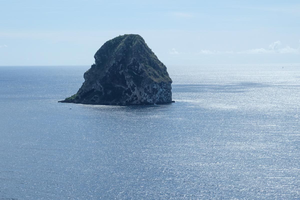 Au large, s’élève un îlot volcanique en forme de diamant qui a donné son nom à l’endroit. Son histoire tumultueuse entre français et anglais, et surtout son occupation par des forces armées semble assez incroyable vu l’étroitesse du lieu (voir Wikipédia)