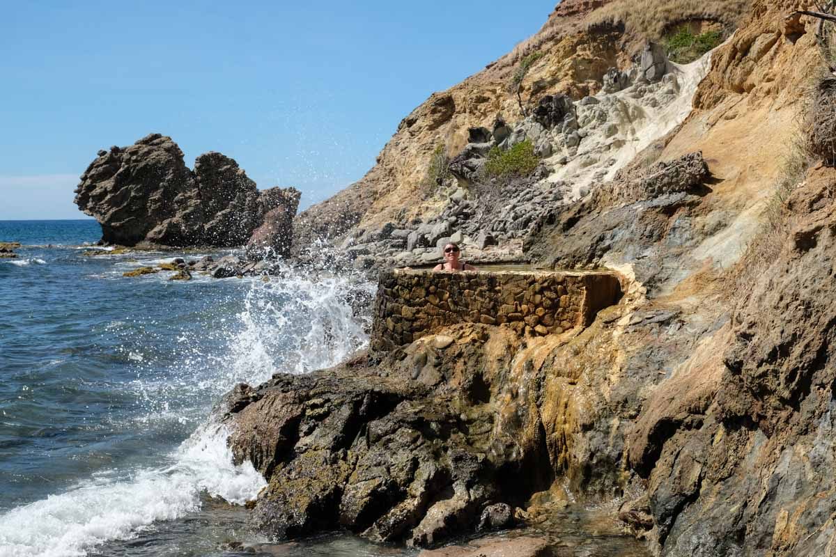 Pour l’atteindre, il faut un peu crapahuter dans les rochers et on arrive à un petit bassin en pierres battu par les flots…