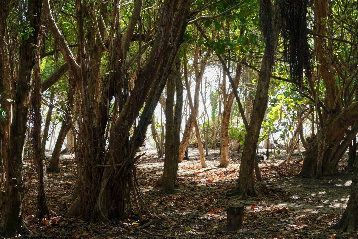Au bout du parking qui longe la plage, un sentier court dans la forêt côtière et mène à la magnifique balade de la « Savane des Pétrifications ».