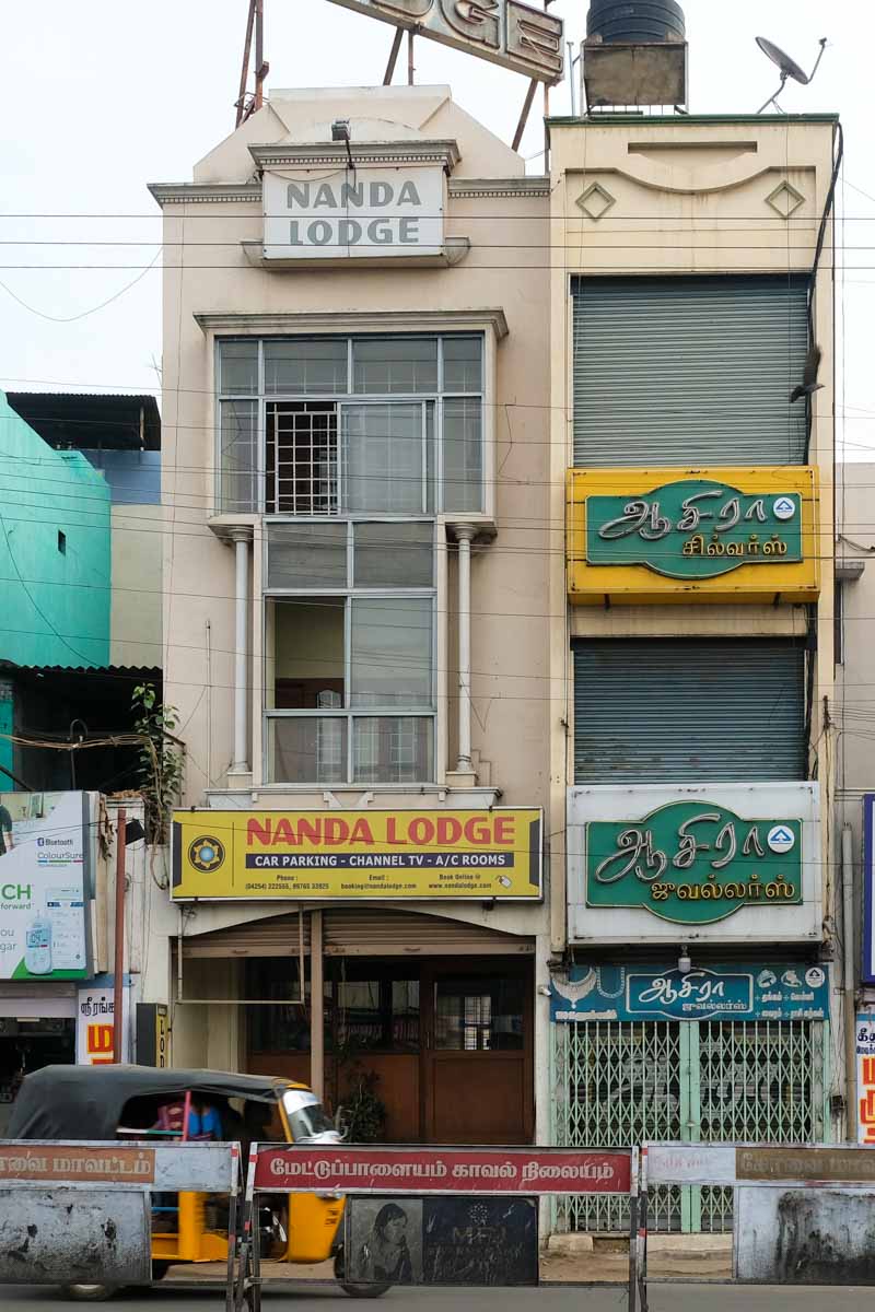 Hôtel à Metupellayam : « Nanda Lodge », chambre vaste et correcte : 850rps. En face la gare routière.
