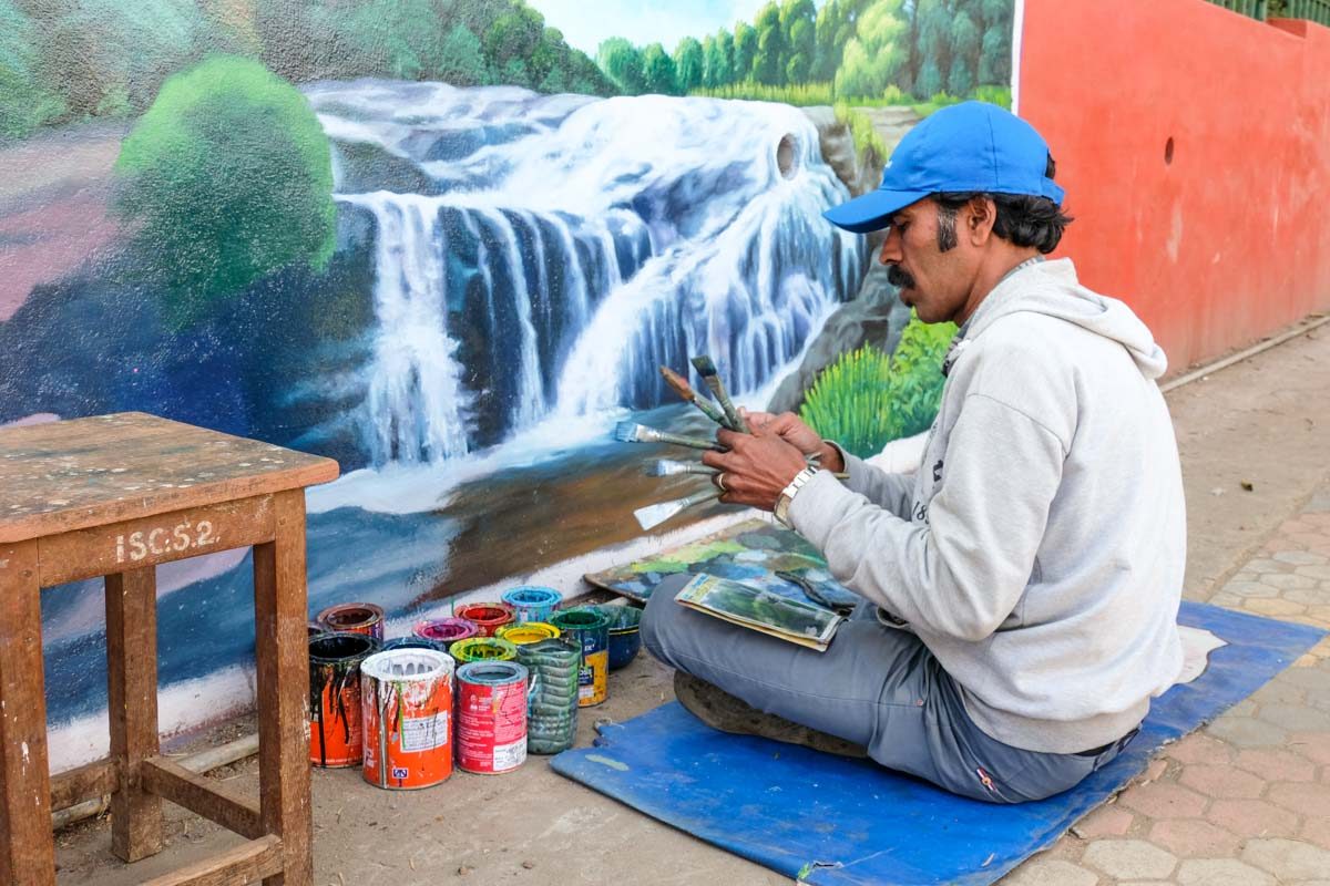 Dans une rue d'Ooty, un peintre de fresques murales