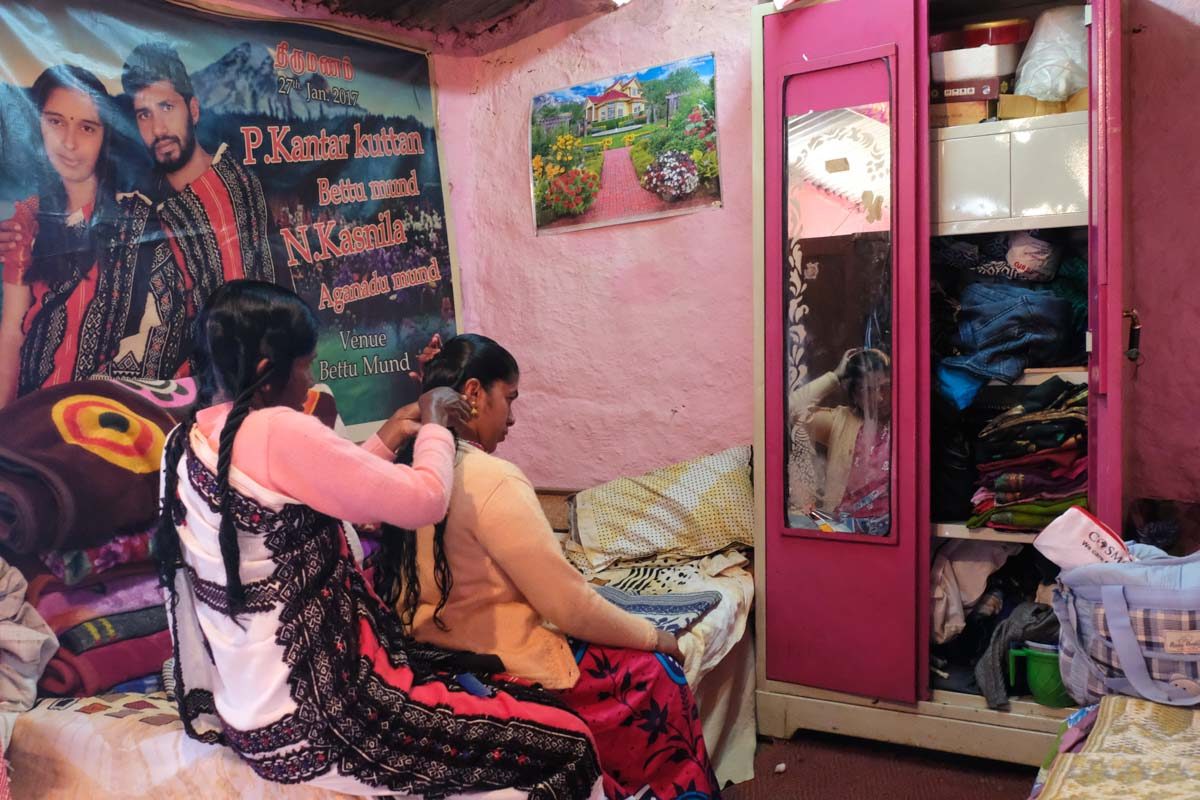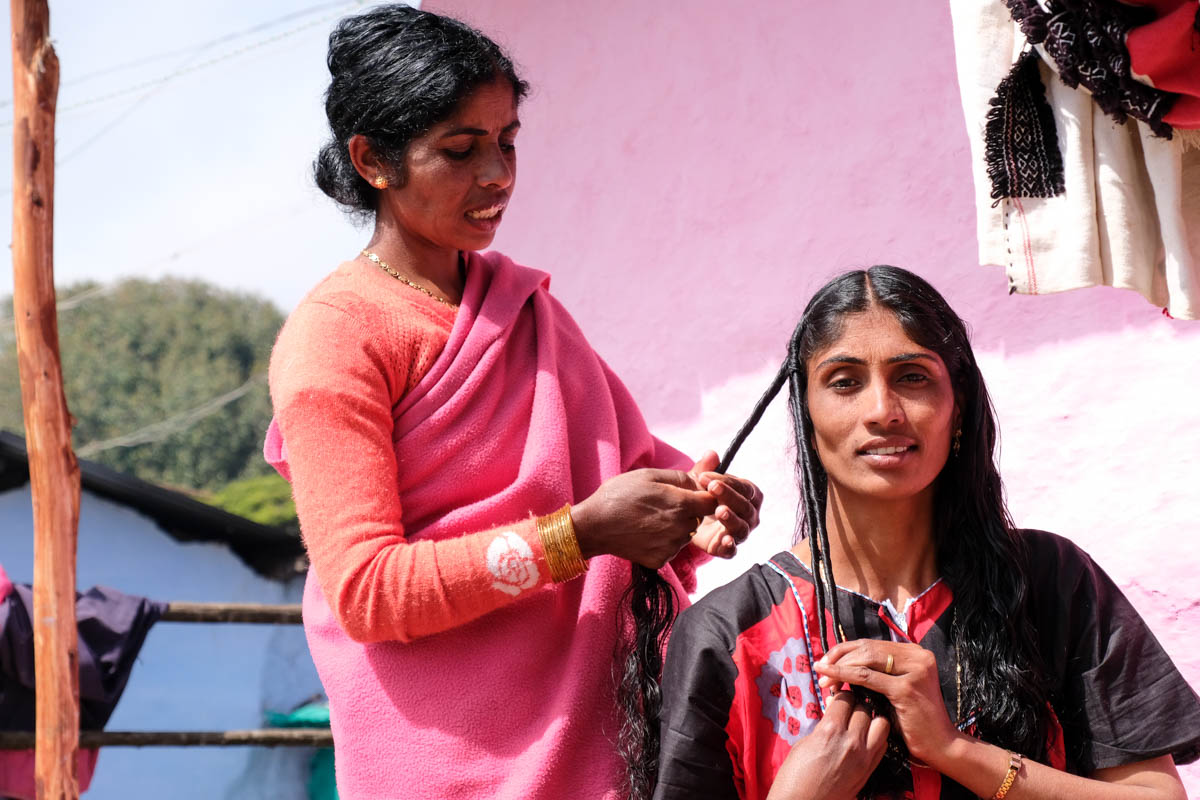 Les femmes Toda se coiffent d’une manière particulière : elles torsadent les longues mèches de leur chevelure, ce qui forme des boucles genre « anglaises ».