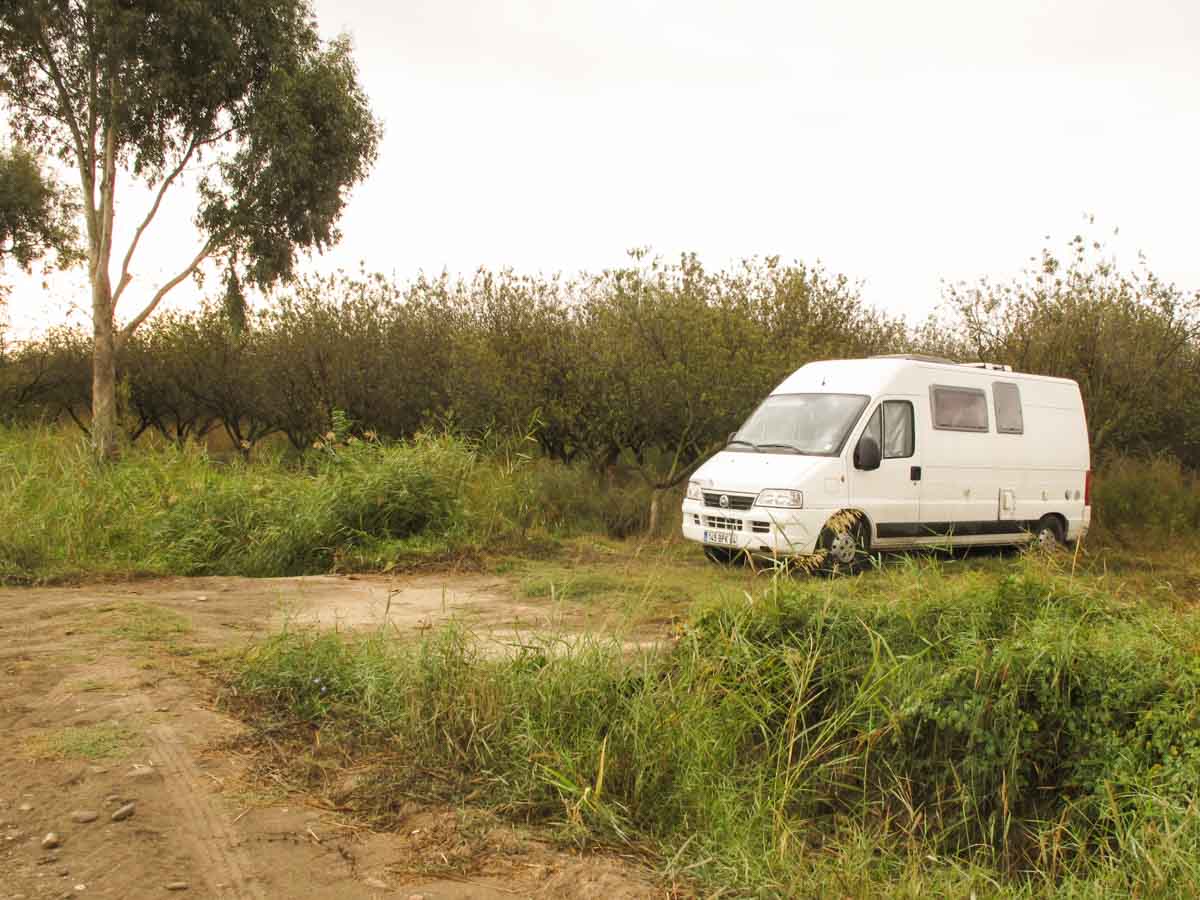 À l’entrée d’un verger d’abricotiers, nous pouvons nous garer pour la nuit sans risquer de nous embourber…