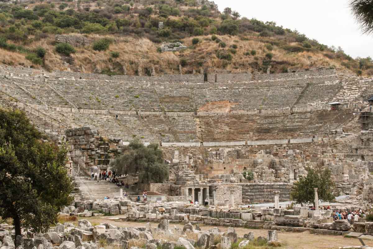 Le grand théâtre d'Éphèse avait des gradins dont les rangées étaient disposées de manière à améliorer l'acoustique et le champ de vision des rangs supérieurs.