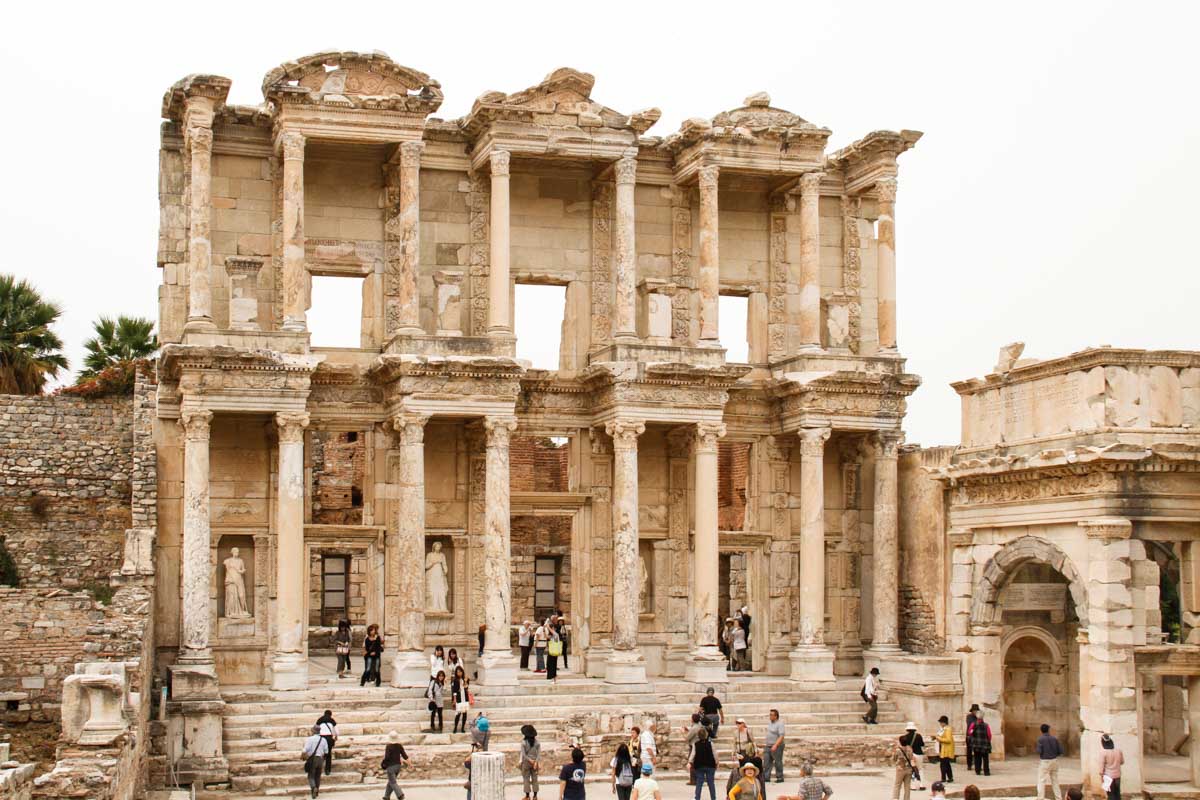 La bibliothèque de Celsus : elle comptait 12 000 rouleaux disposés dans des niches dans les murs. Les niches de la façade abritent des statues représentant les Vertus.