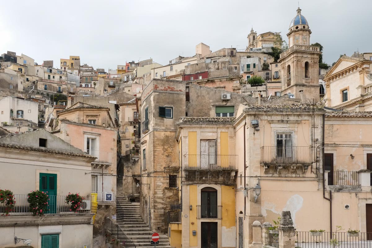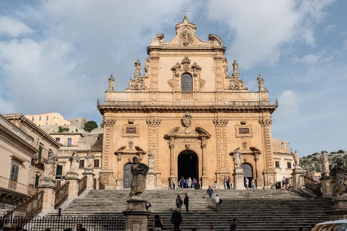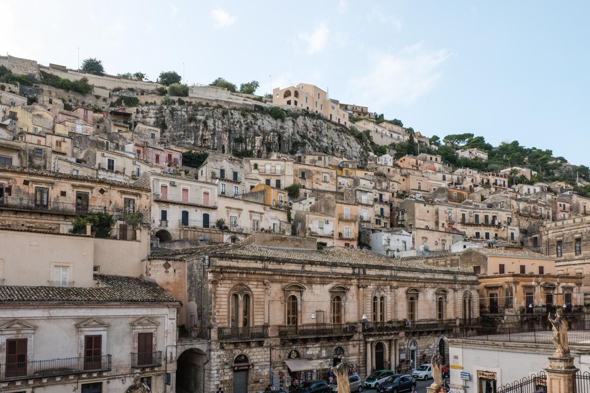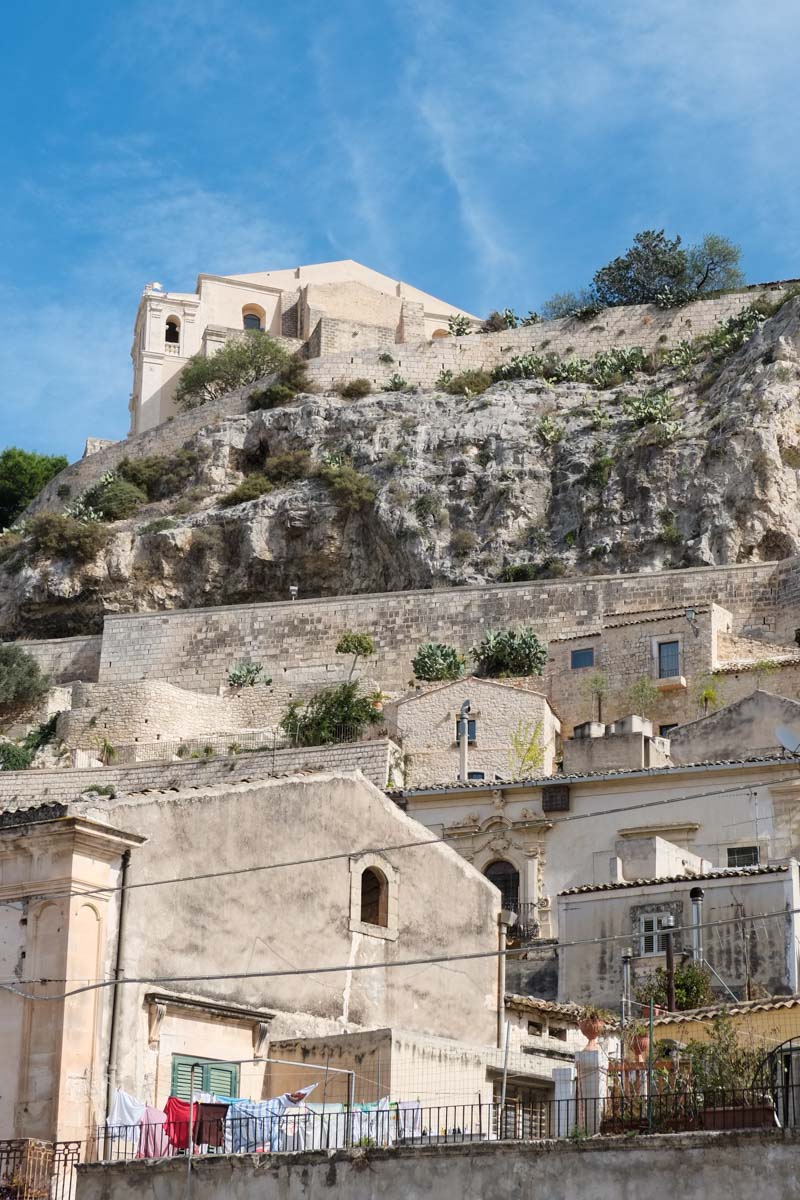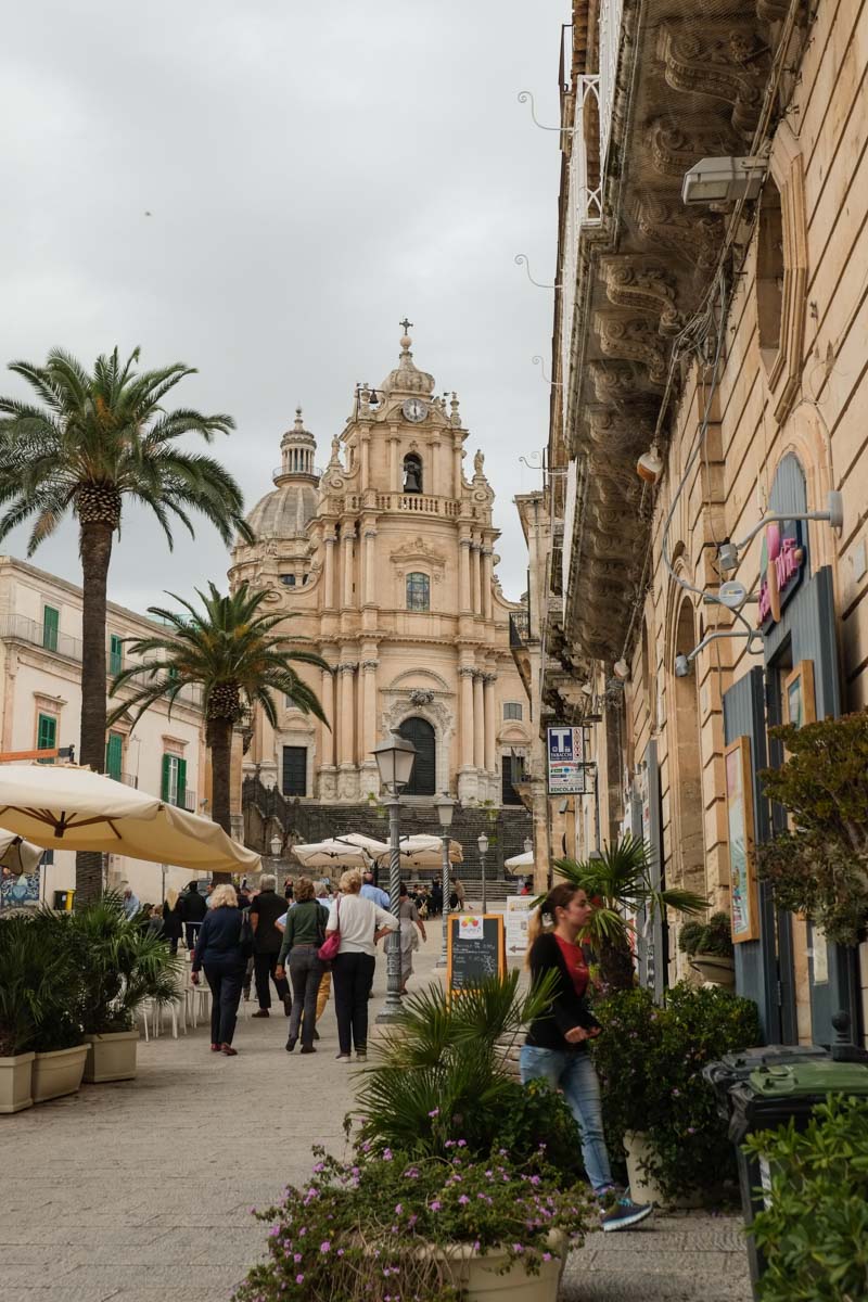 À Ragusa, où nous arrivons en fin de matinée, nous nous garons sur le parking situé entre les deux parties de la ville, au pied de Ragusa Ibla. Il doit être payant l’été mais, en cette saison, il est gratuit. (36.9254 14.73653)