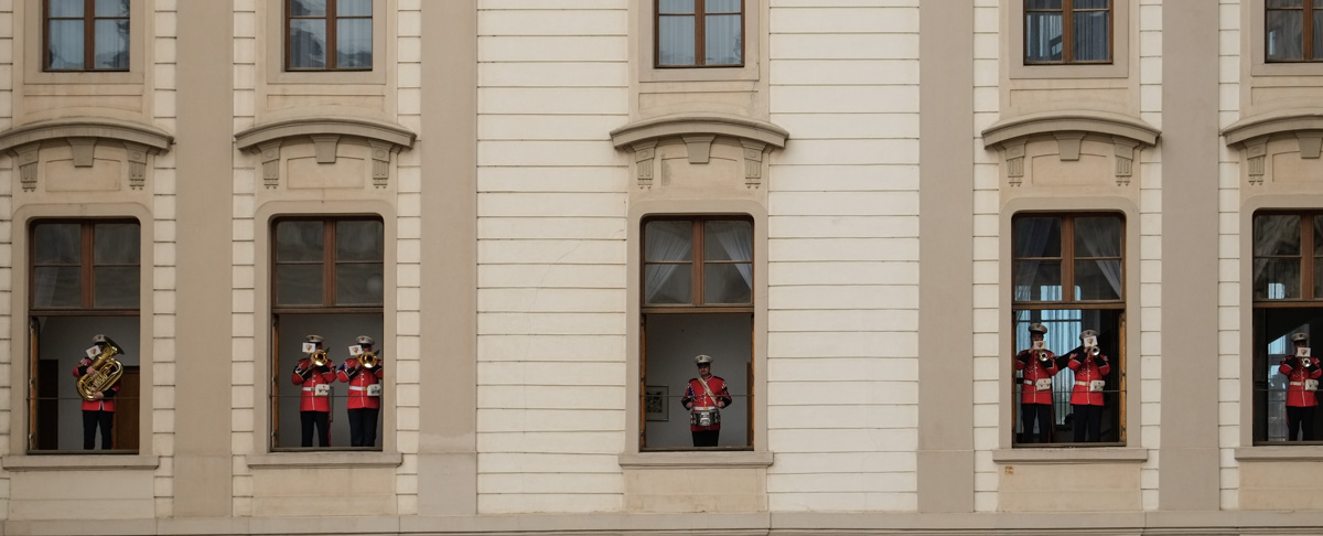 Et nous assistons à la relève de la garde en musique (il est midi), avec les musiciens aux fenêtres !… Amusant…