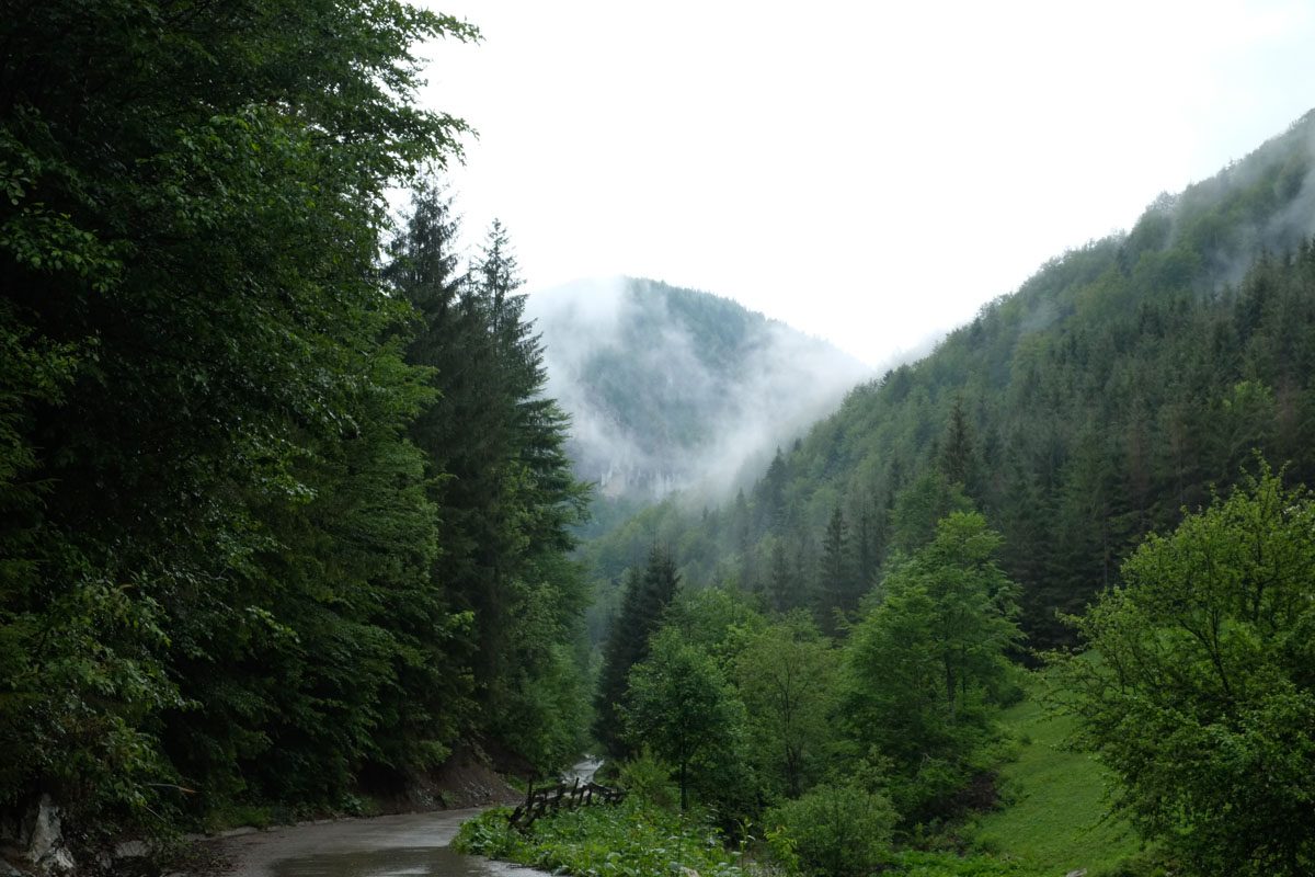 Ensuite, heureusement, c’est goudronné (c’est le mystère des routes roumaines : par endroits, des tronçons en bon état alternent avec une absence de revêtement ou avec une route pleine de trous)…