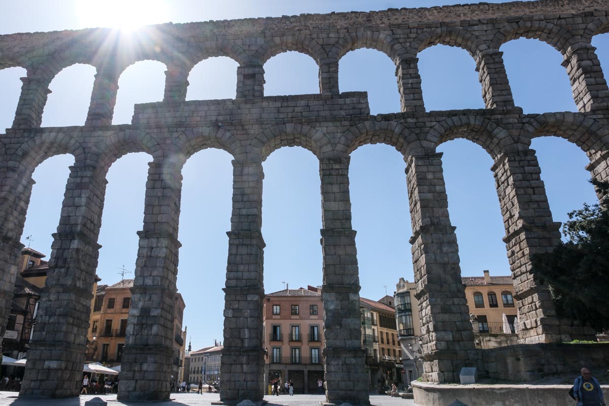Mais il est bien trop tôt pour manger ici ! Quand nous arrivons dans le restaurant « Mesón El Pastor », la salle est vide, le four n’est pas encore chaud… Il faut attendre un peu mais nous pourrons bientôt déguster un menu typique de la Castille : soupe au chorizo, agneau grillé, tarte au turón. Pas de légumes, nous sommes dans une région d’élevage. Le paysage alentour est aride et caillouteux.