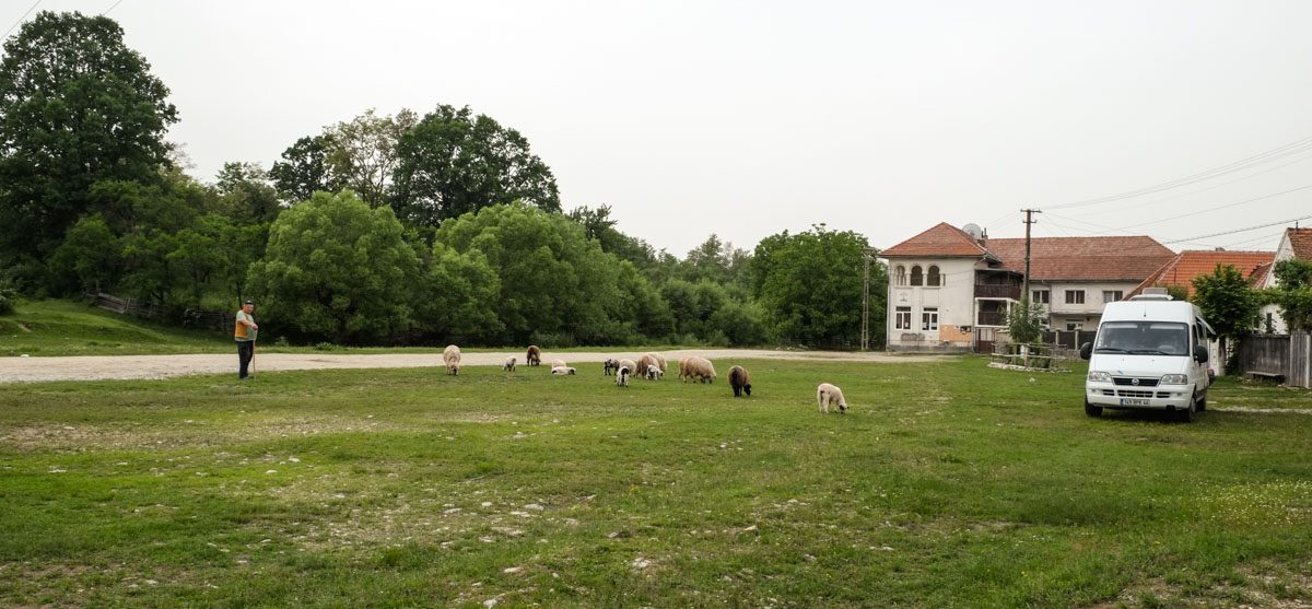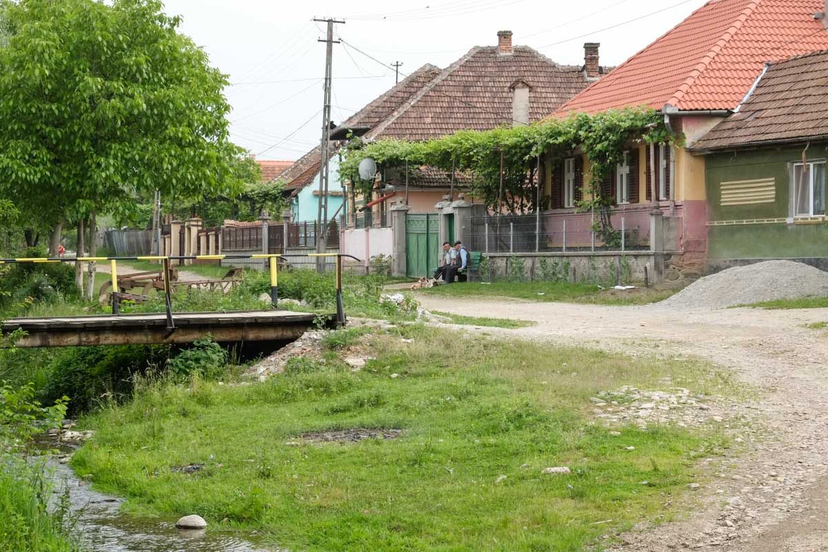 Vers 17h, nous prenons la route E68, en direction de Fagaras, dans l’espoir de trouver un coin pour passer la nuit. Un peu après Porumbacu de Jos, nous remarquons une petit village qui s’étire le long d’une rivière derrière un magasin fermé.