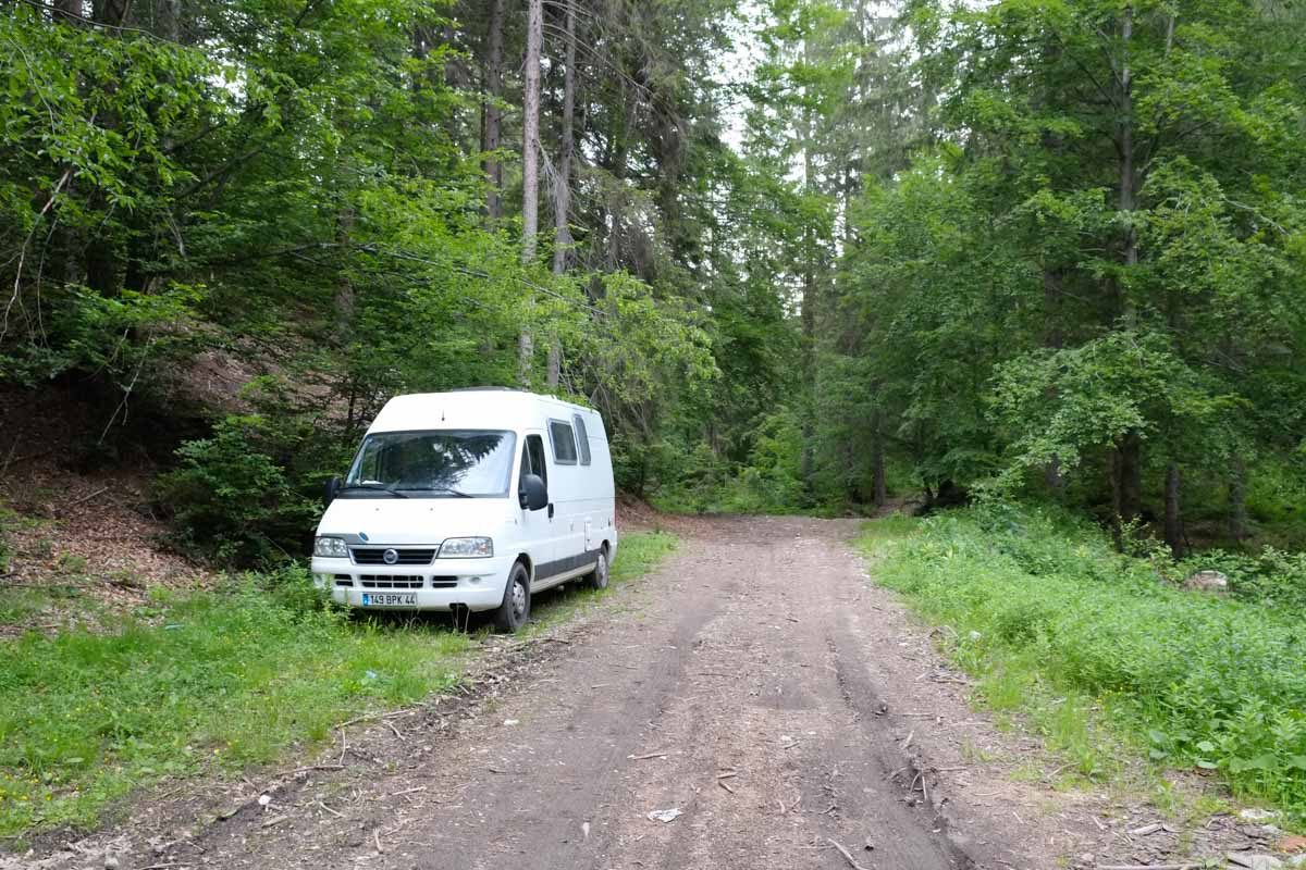 Nous cherchons un coin pour passer la nuit et, après quelques recherches, nous trouvons une entrée de forêt pas trop boueuse, un peu avant le village de Zarnesti,