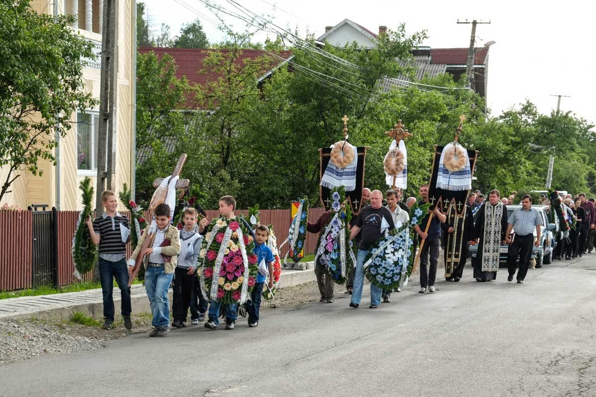 Nous croisons une procession dans une rue de village, il s'agit de funérailles.