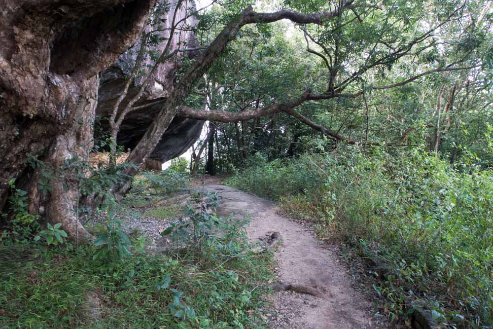 Là, se trouve un temple au pied d’une colline rocheuse. Au sommet de cette colline, on a une vue magnifique sur le gros rocher (ou rocher du Lion).