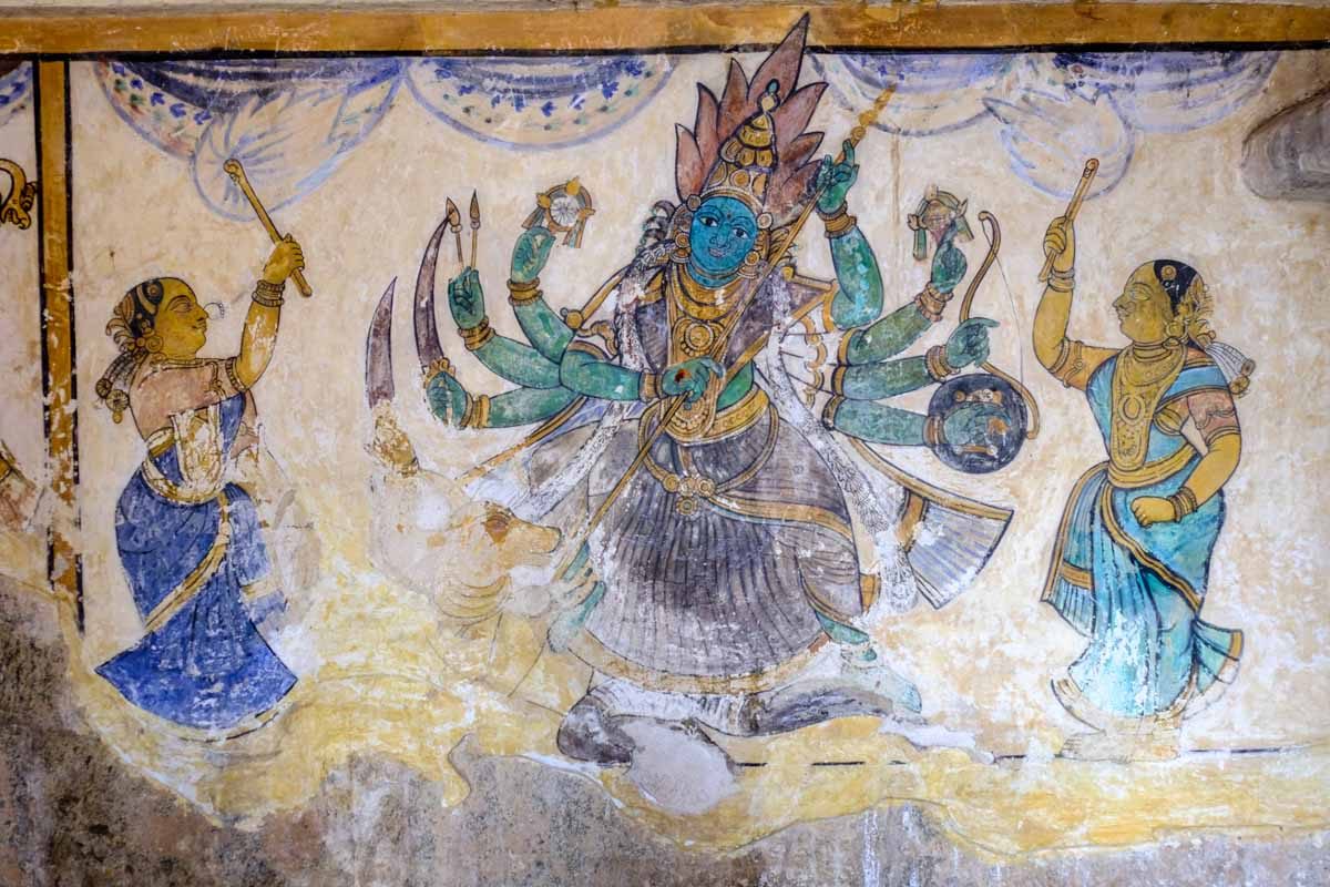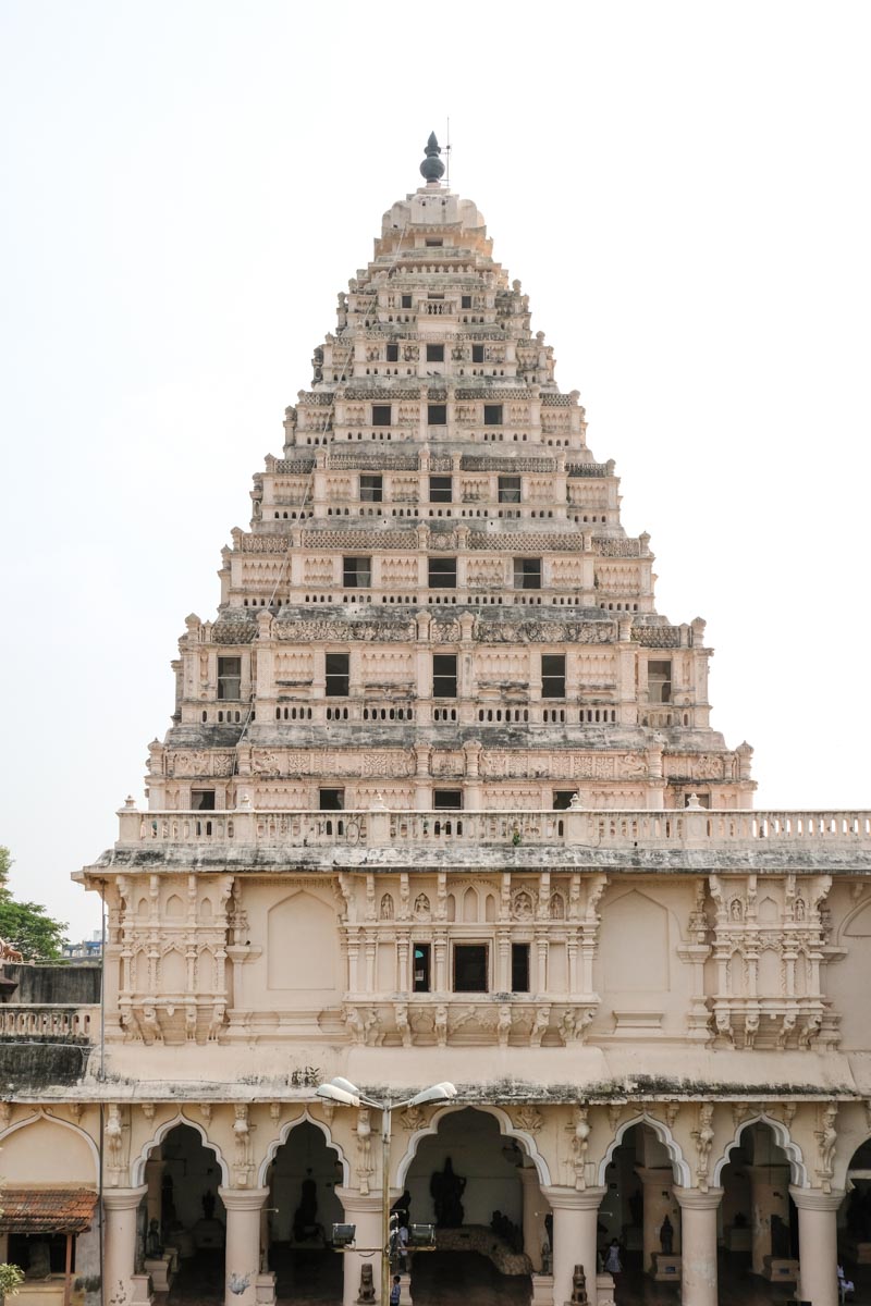 Une salle à colonnes mène au sanctuaire principal surmonté d'un vimana de 61m de haut
