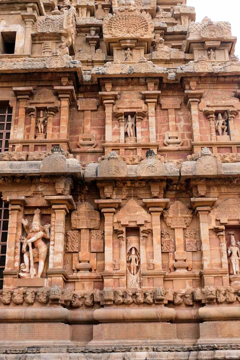 De nombreuses niches ornées de sculptures de divinités ornent les murs extérieurs du sanctuaire