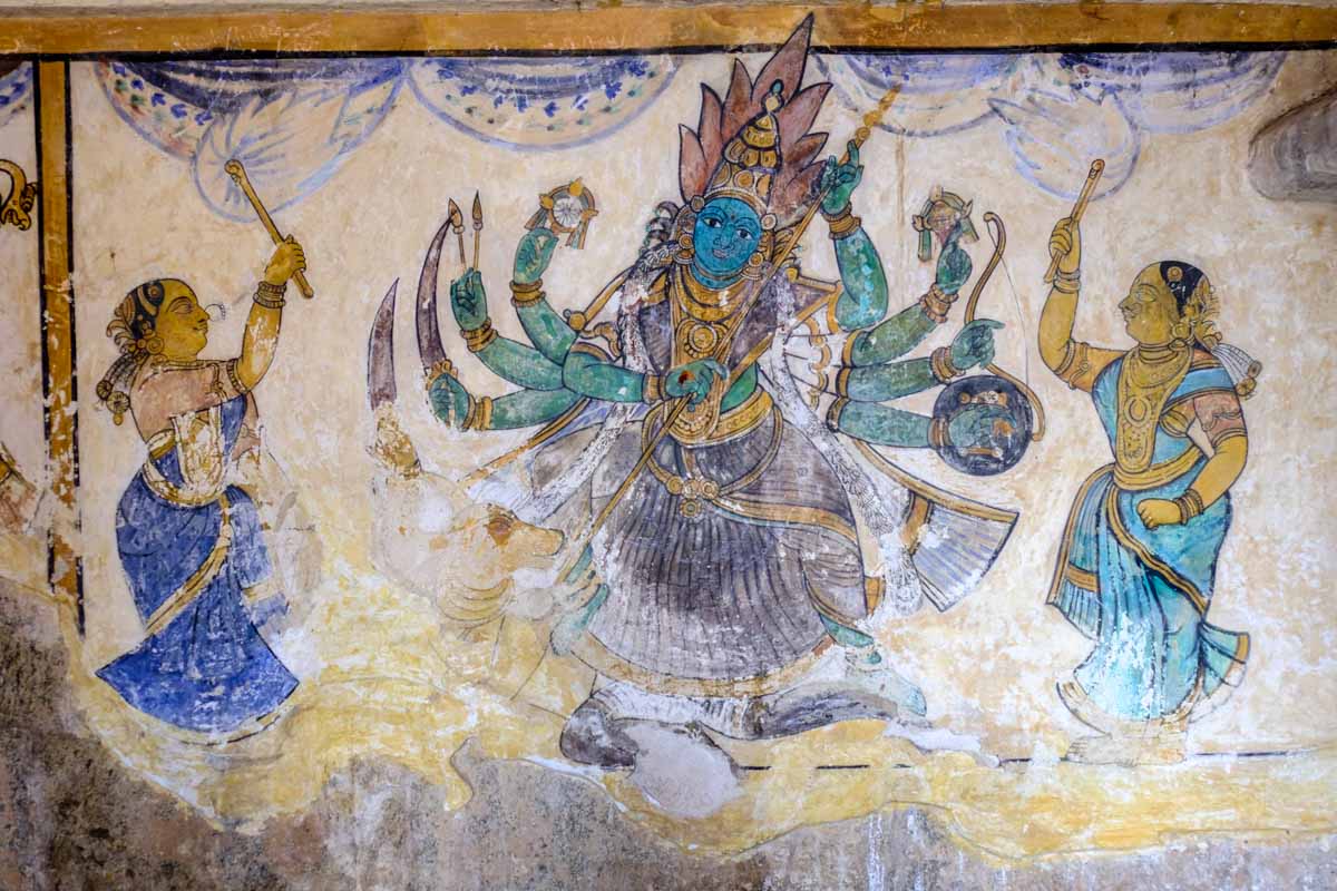 Nous y passons un agréable moment à admirer les très belles sculptures en bronze et en pierre, la salle d’apparat avec son plafond et ses colonnes ornés de fresques, les très vieux documents dans la bibliothèque du Maharajah.