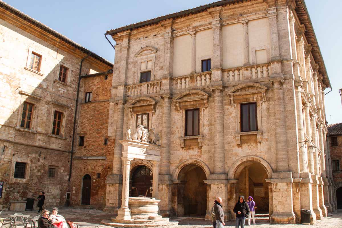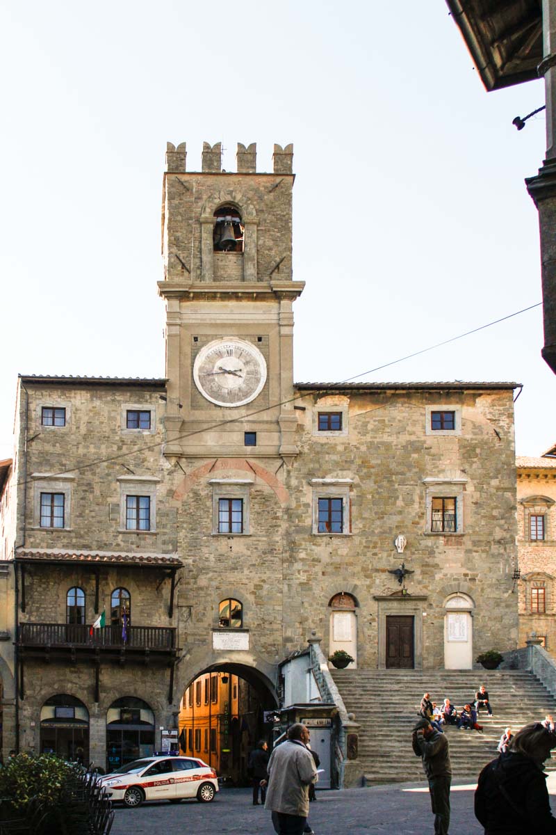Nous grimpons jusqu’à la Piazza Grande qui a beaucoup de charme, avec ses palais et son puits Renaissance.