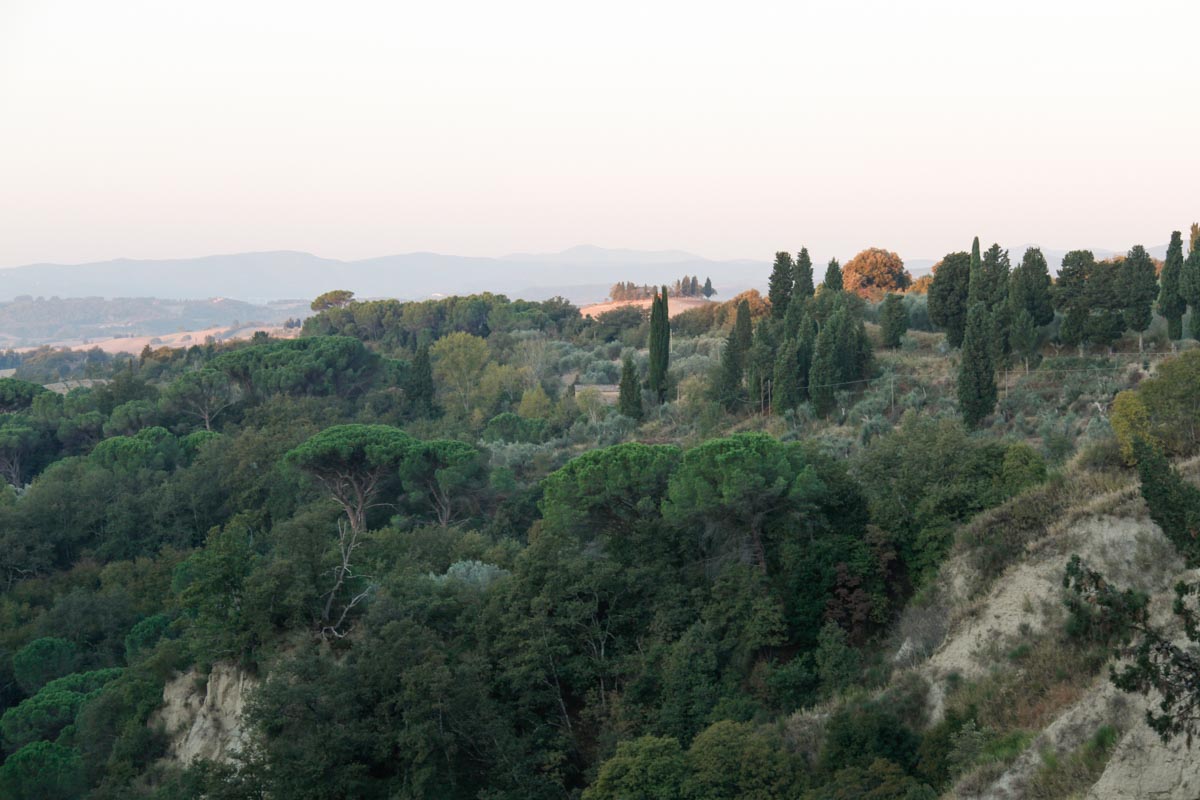 colline boisée où se trouve l'abbazia di Monte Olivieto Maggiore