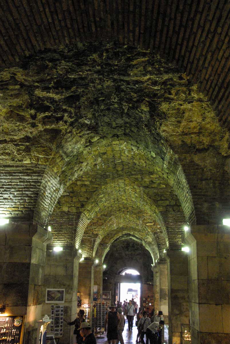 Ces grandes salles voutées sont les soubassements du palais de Dioclétien, occupées aujourd'hui par des étals de souvenirs