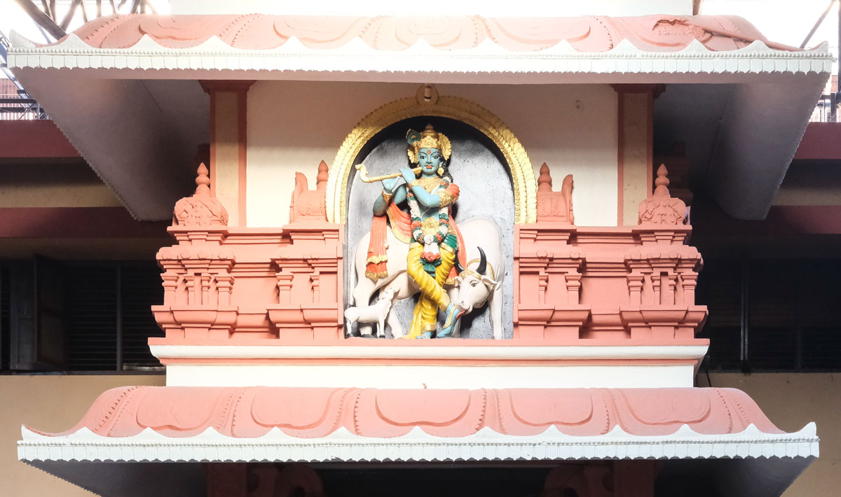 La particularité de ce temple est que les dévots n’ont qu’une vue partielle de l’idole. Elle n’est possible qu’à travers une fenêtre intérieure.