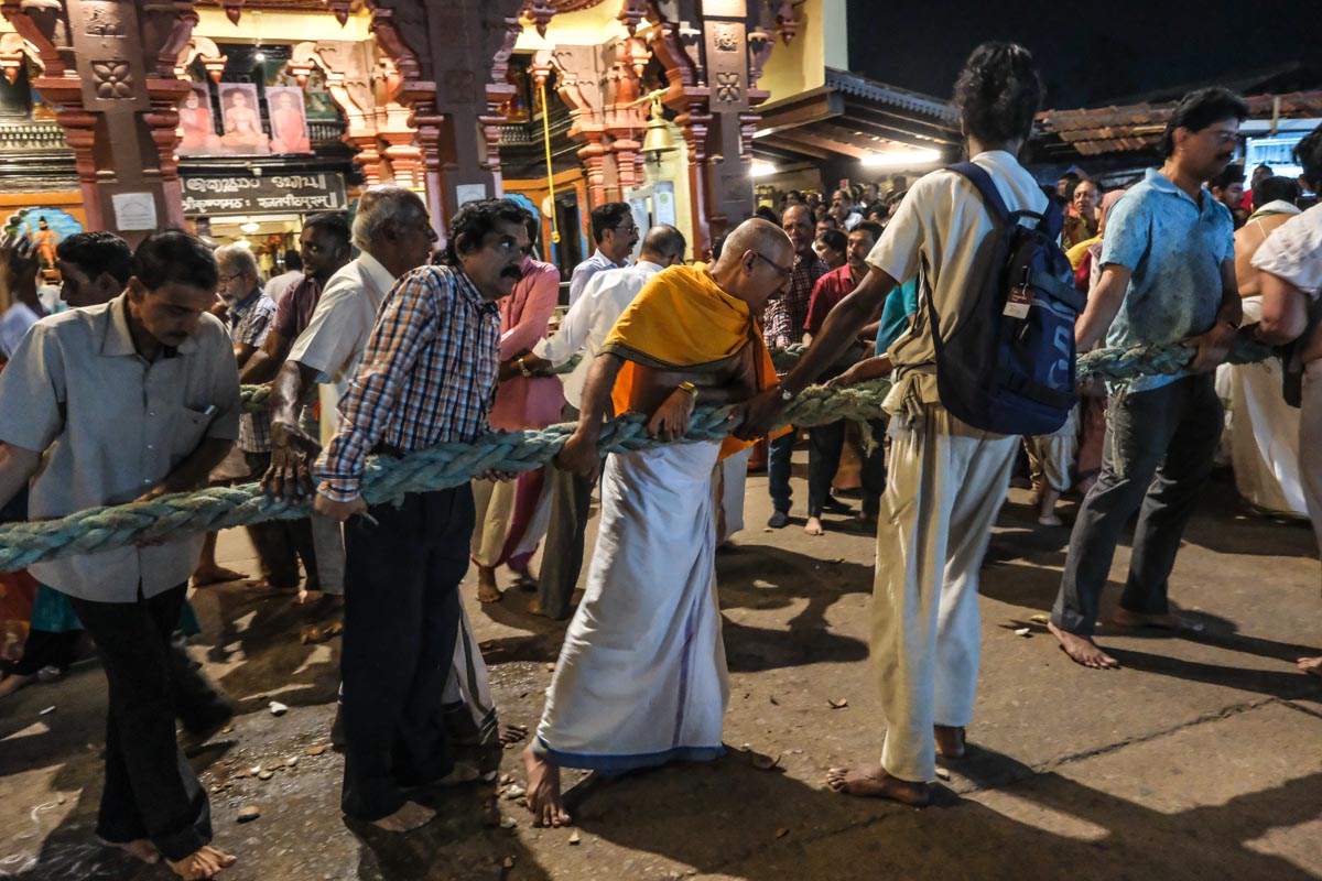 Il va faire tout le tour de l’enceinte du temple, tiré et accompagné par la foule…