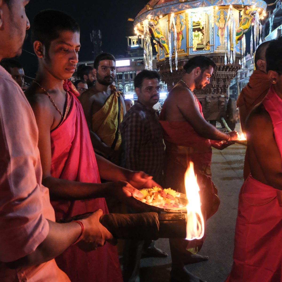 Comme tous les soirs en cette saison, nous savons qu’il y a un grand défilé de char autour du temple …