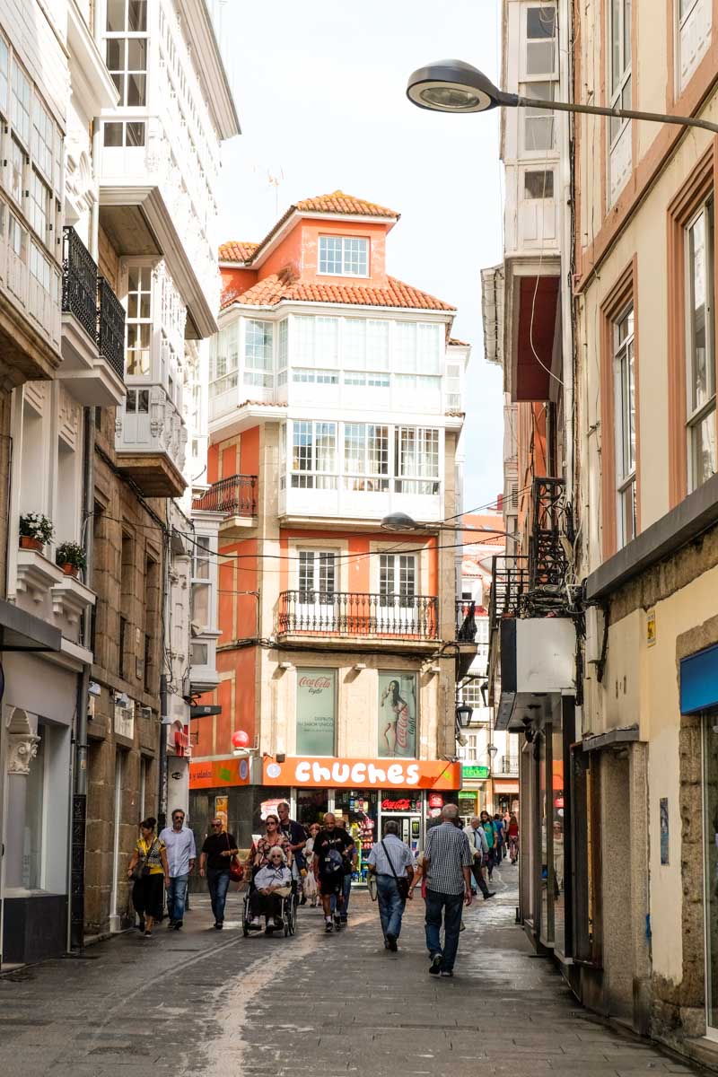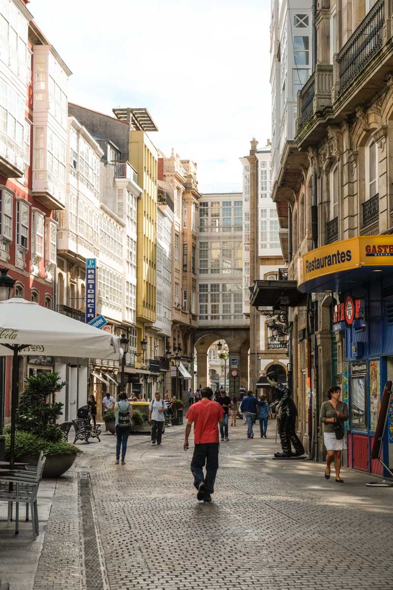 À La Corogne, nous nous garons sur le grand parking au pied de la Tour d’Hercule. Puis, nous cheminons le long du Paseo Maritimo, le long de la mer, et arrivons à la vieille ville. En fait, il n’y a pas grand-chose à y voir…
