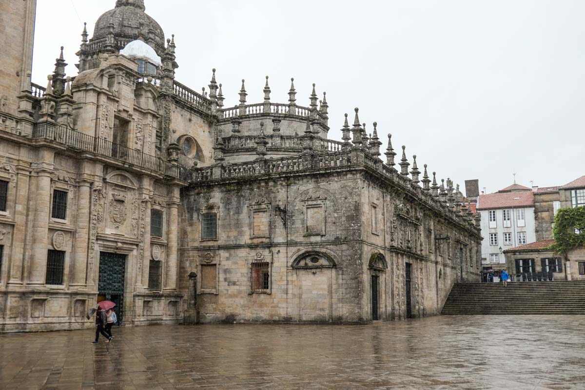 Visite de la célèbre cathédrale avec son non moins célèbre encensoir, de la place do Obradoiro lieu d’arrivée des pèlerins venus du monde entier, et des vieilles rues médiévales. Dommage qu’il fasse si mauvais temps …