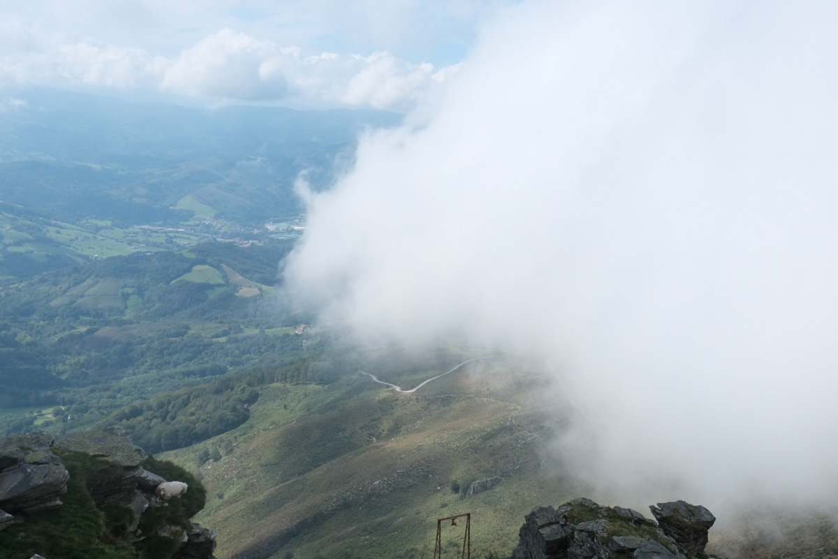 Hendaye puis Ascains où nous prenons le petit train à crémaillère qui monte à la Rhune, à plus de 900m d’altitude.