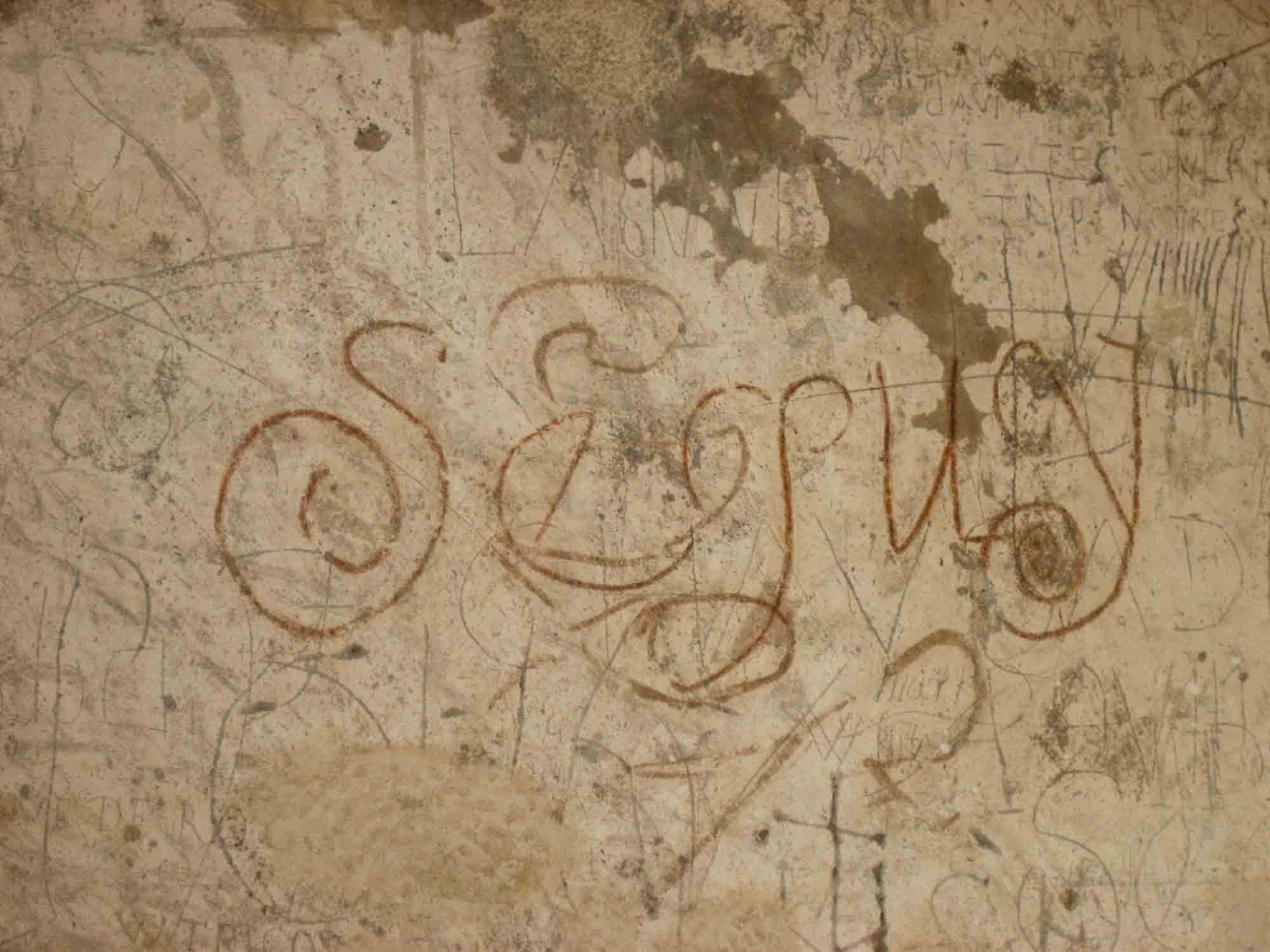 En 1972, des fouilles révèlent aux archéologues les traces de graffiti dont un grand nombre dans une salle haute de la tour grosse.