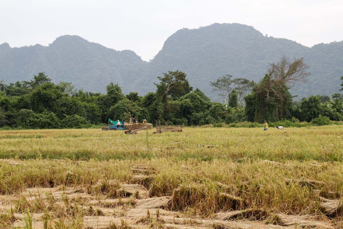 Quand nous quittons le « blue lagoon », nous continuons la piste toujours aussi cahotante dans la belle campagne et les petits villages des alentours où les femmes et jeunes filles tissent des étoffes de soie ou de coton…