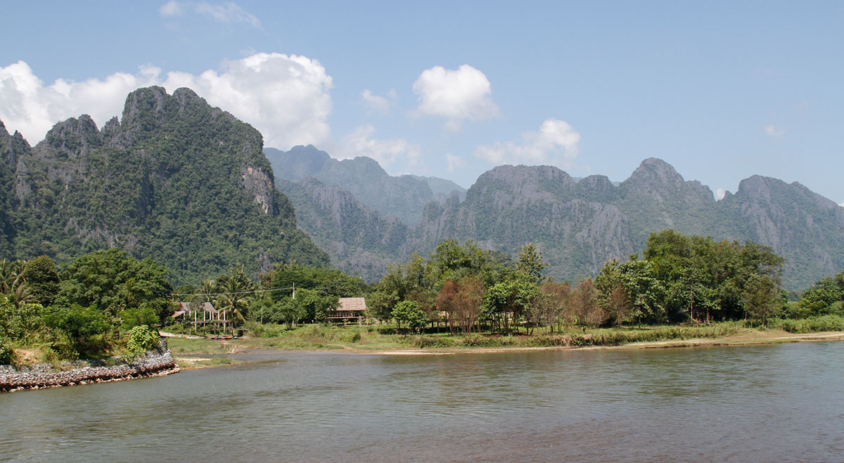 Pendant tout le trajet, le paysage de montagne est magnifique. Nous arrivons enfin à Vang Vieng, il est 16h30. Ouf, 7h de trajet !