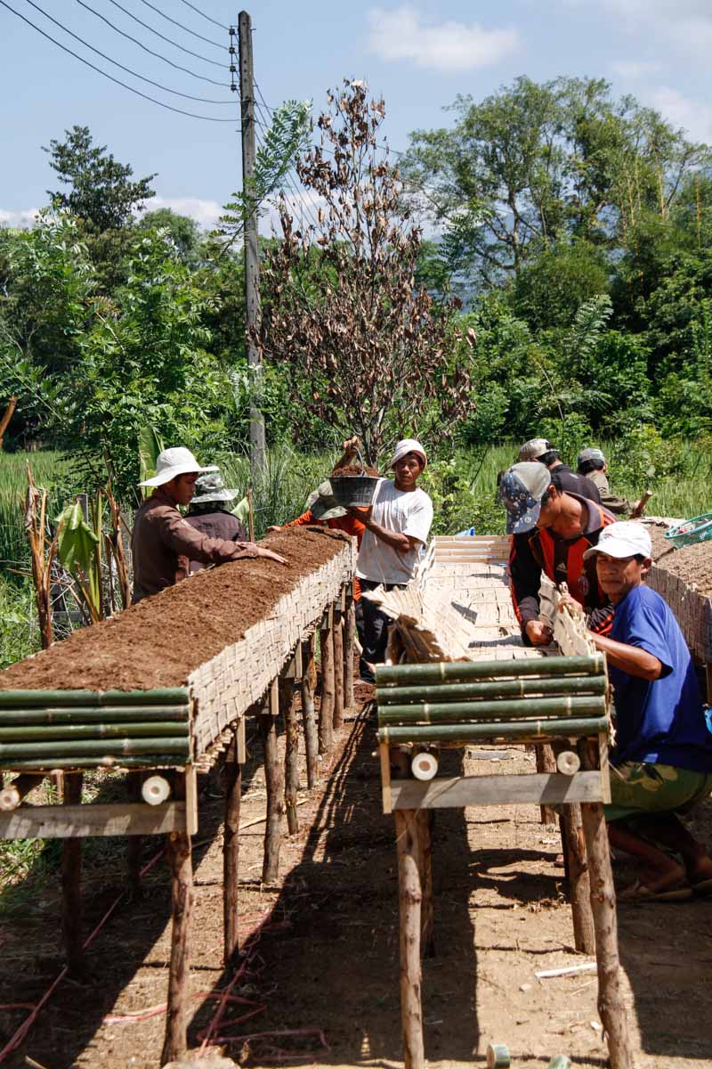 Ces gens essaient de mettre en place une culture de fraisiers sur pilotis !
