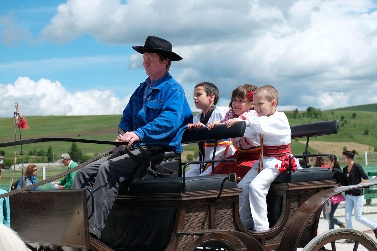 Arrivés au niveau du village, nous apercevons dans un pré, des enclos avec des animaux, des carrioles et plusieurs personnes qui arrivent. C’est une sorte de comice agricole, une petite fête de village avec enfants qui dansent en costume traditionnel, musiciens et chanteurs populaires…