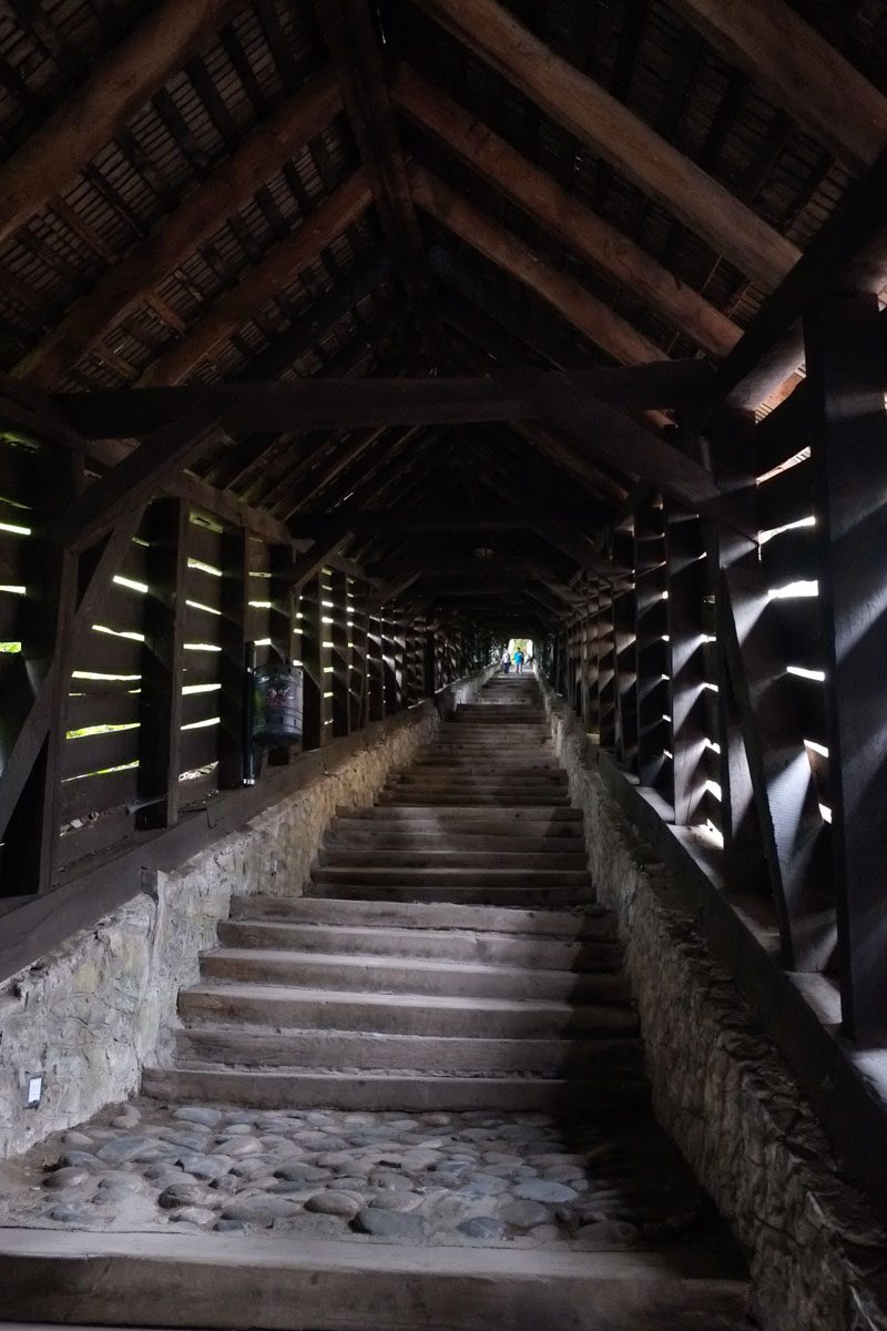 Dans l’église fortifiée, on peut grimper jusqu’à l’orgue et même sous les combles, au-dessus de la voûte de l’église.