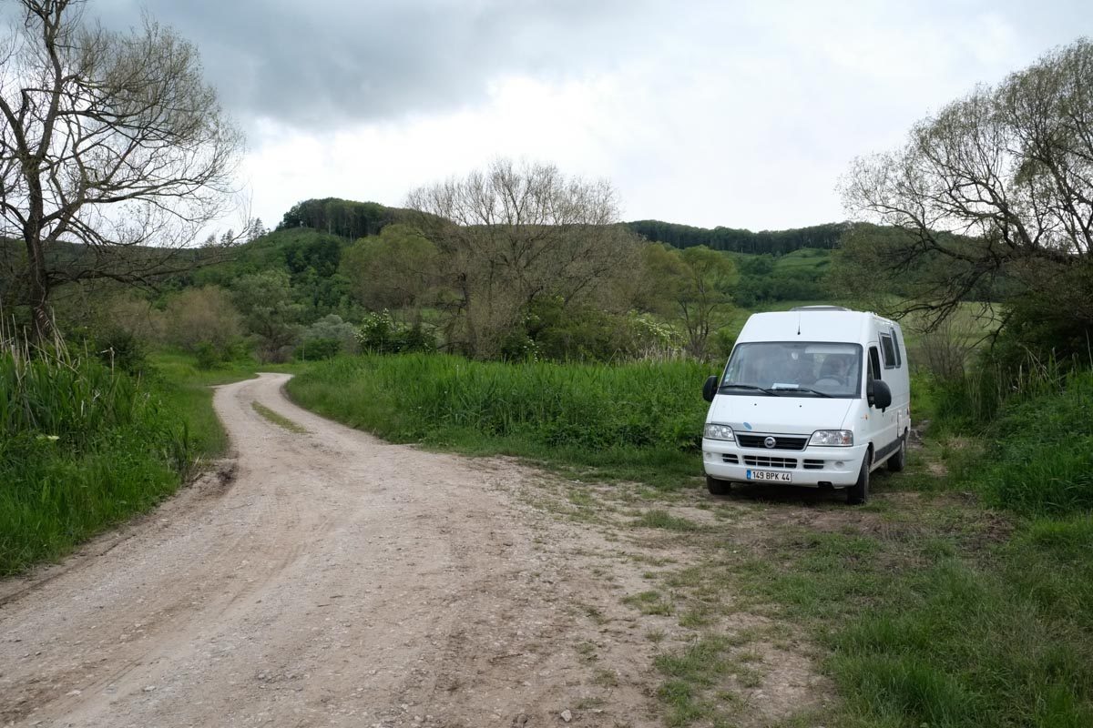 Vers 18h, nous reprenons la route dans l’espoir de trouver un coin où nous garer pour la nuit.