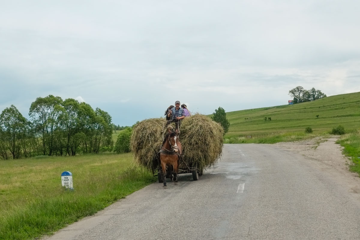 Le plus embêtant, c’est qu’il nous faut reprendre la route toute défoncée pour revenir sur Rupea, puis nous prenons la petite route 104, vers Sercaia, elle aussi dans un état lamentable…
