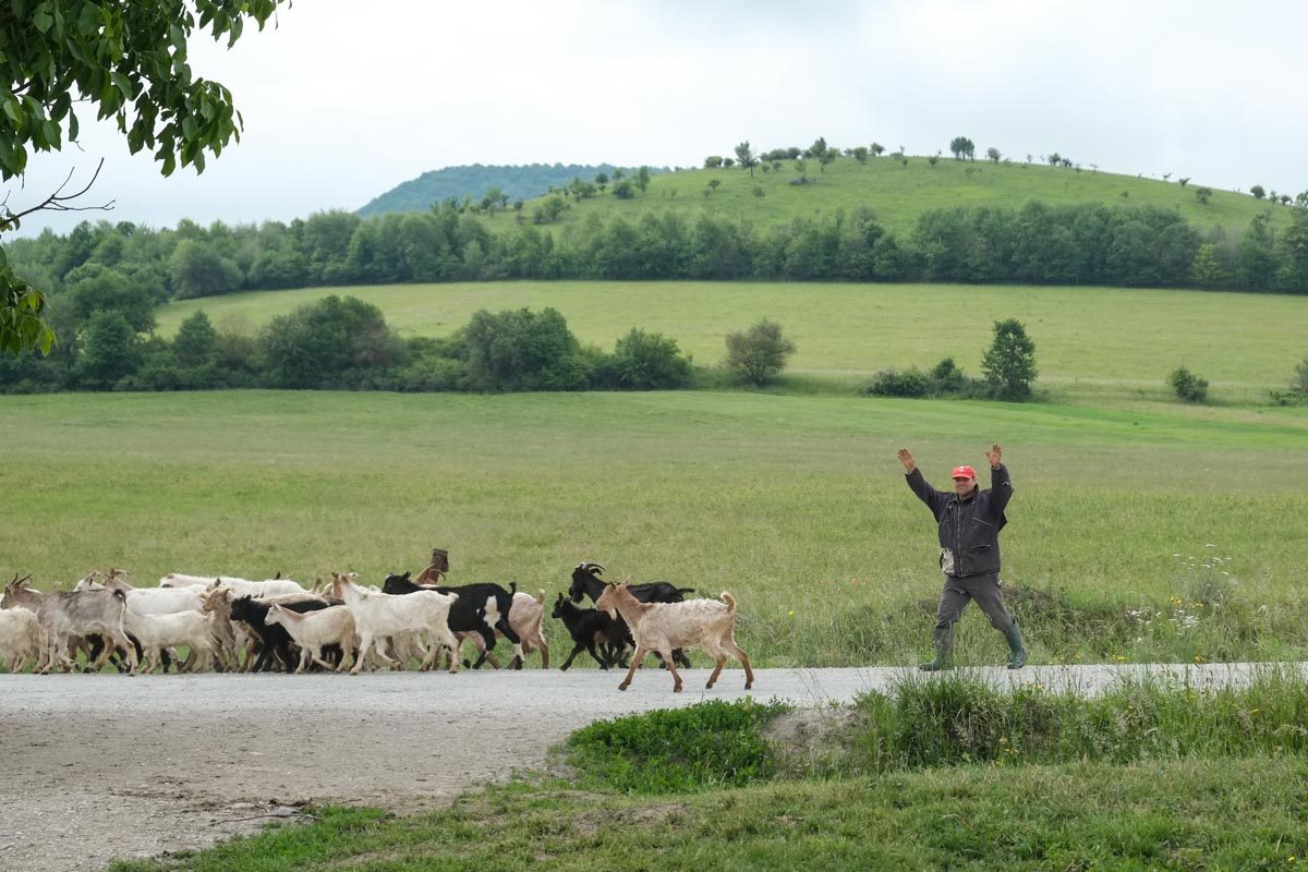A l’horizon se dessinent, de temps en temps les fiers sommets enneigés des Monts Fagaras…