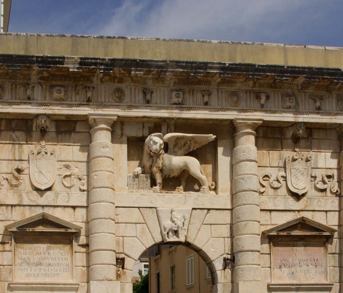 Sur la porte de la Terre-Ferme, le lion de St Marc et les armoiries rappellent la suprématie de Venise au XVIème s.